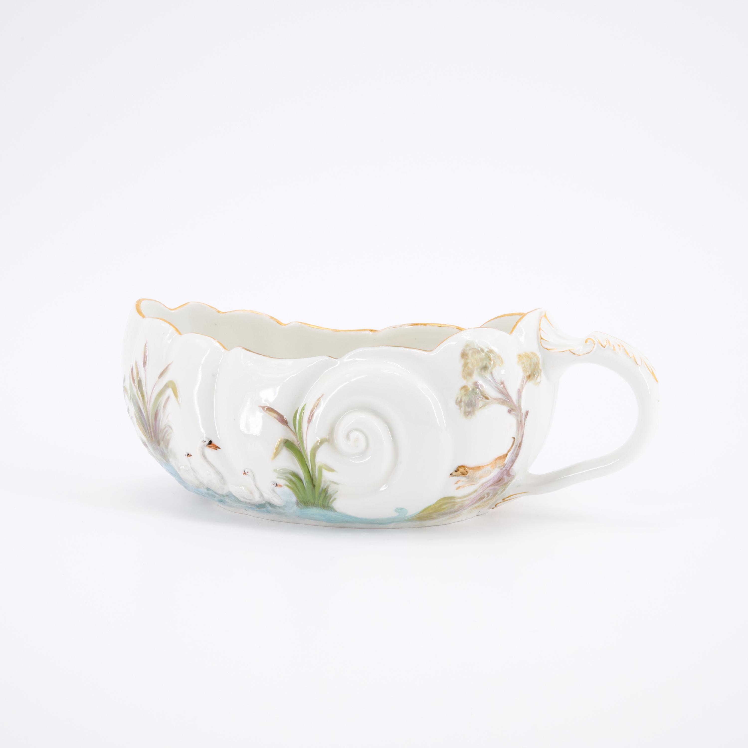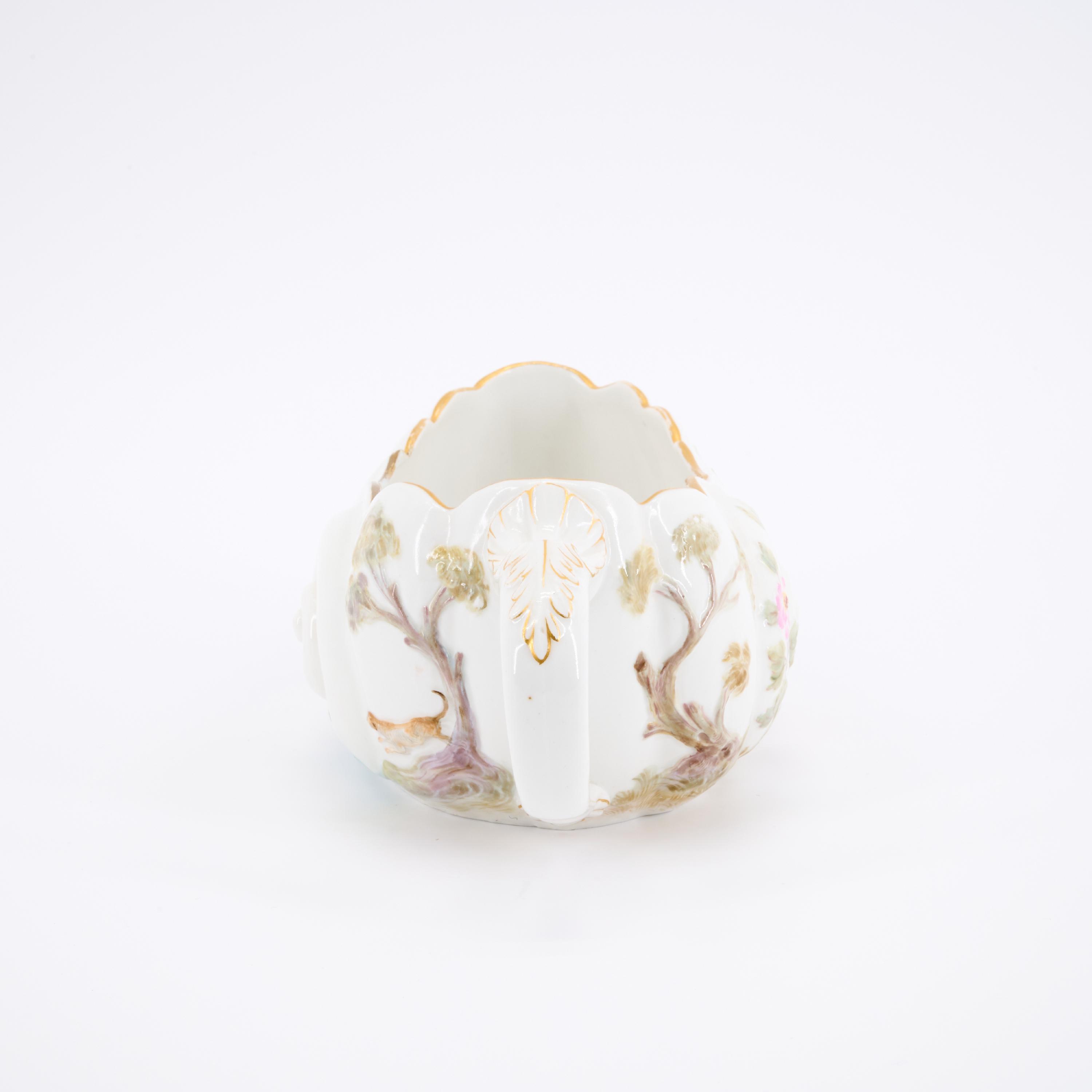 Technik: Porzellan, farbig staffiert, gold dekoriert.