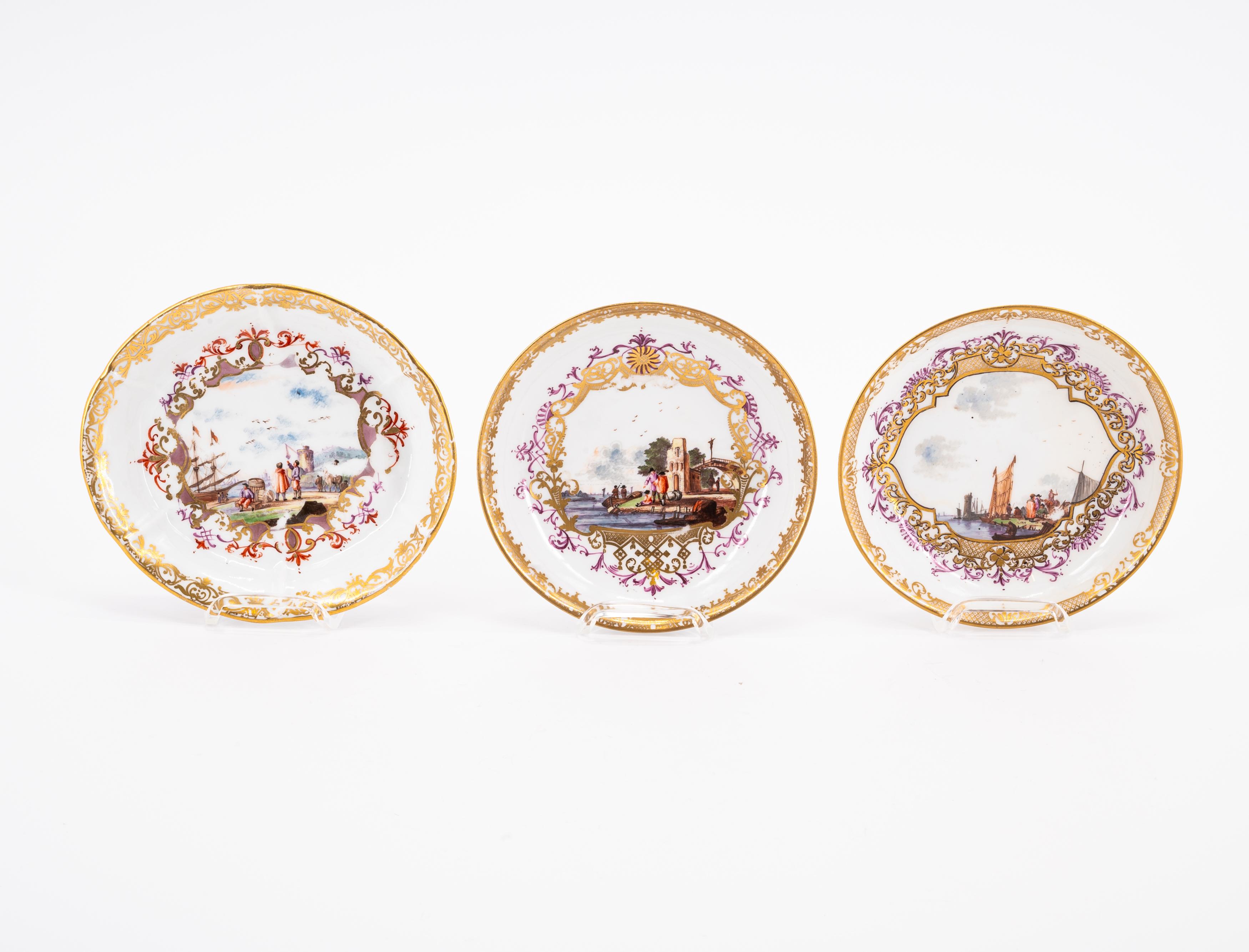 EIN KOPPCHEN, ZWEI UNTERTASSEN, EIN OVALES SCHÄLCHEN MIT KAUFFAHRTEISZENEN.