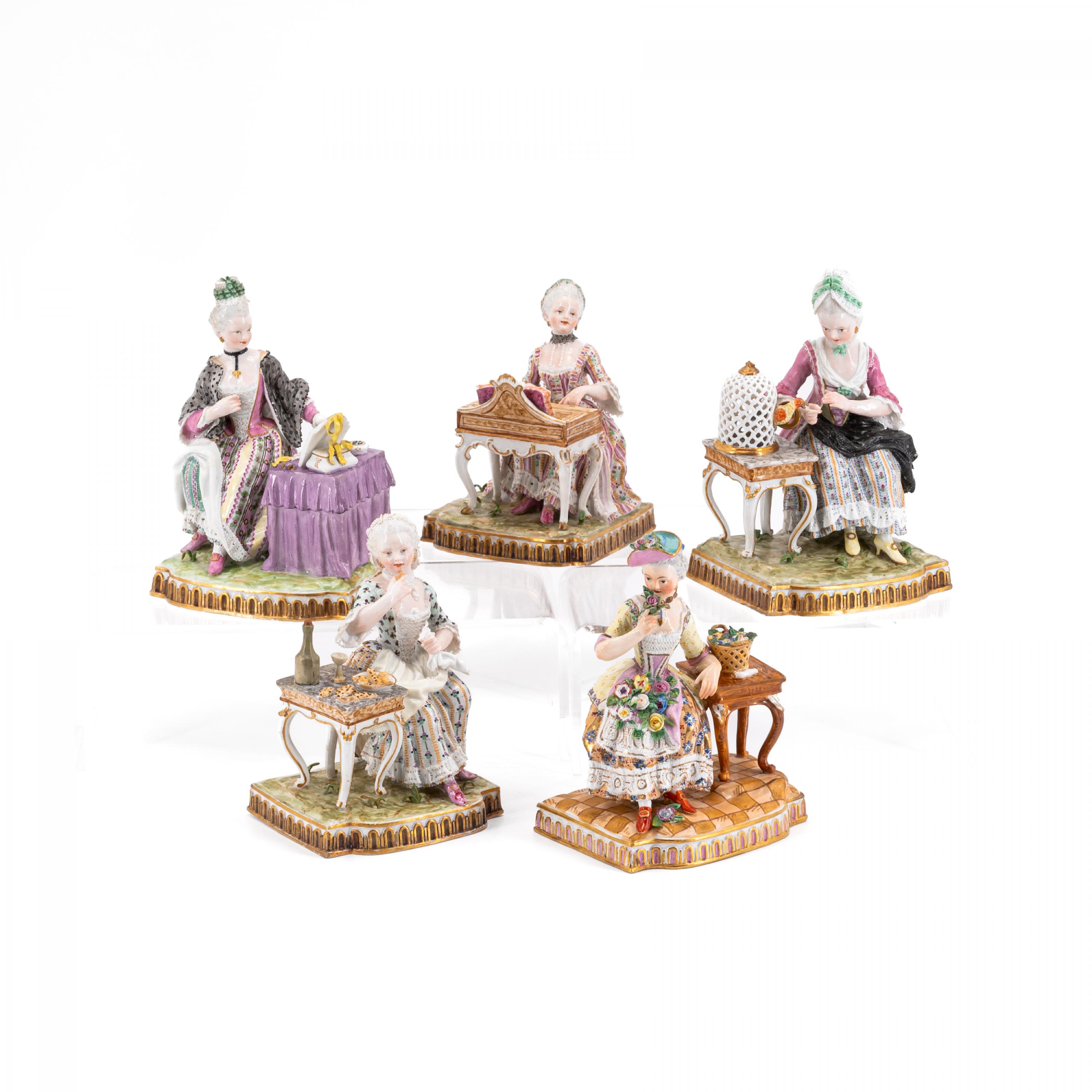 FÜNF GALANTE DAMEN AM TISCH ALS ALLEGORIEN DER FÜNF SINNE.