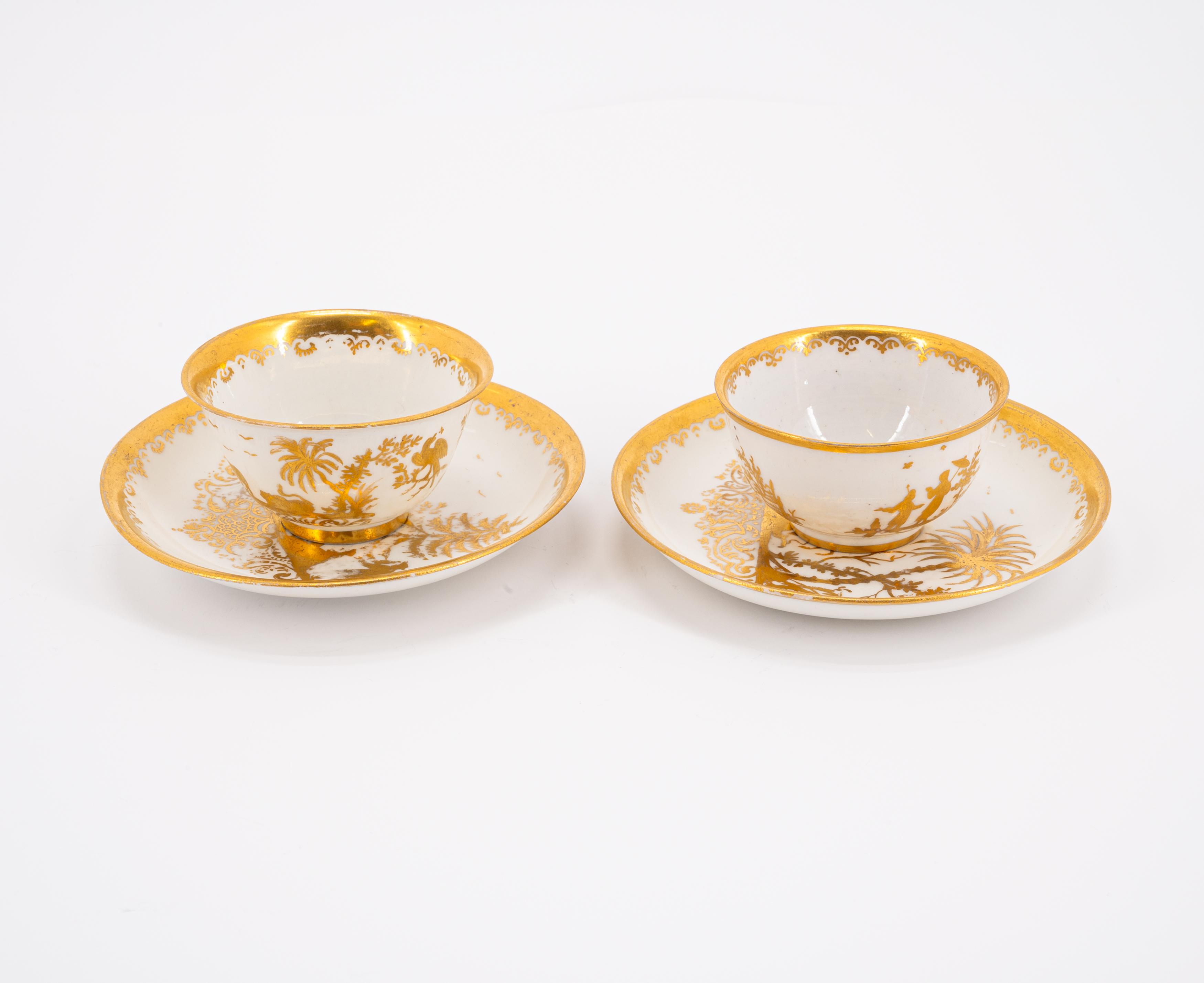FÜNF KOPPCHEN UND UNTERTASSEN MIT CHINOISEM GOLDDEKOR.