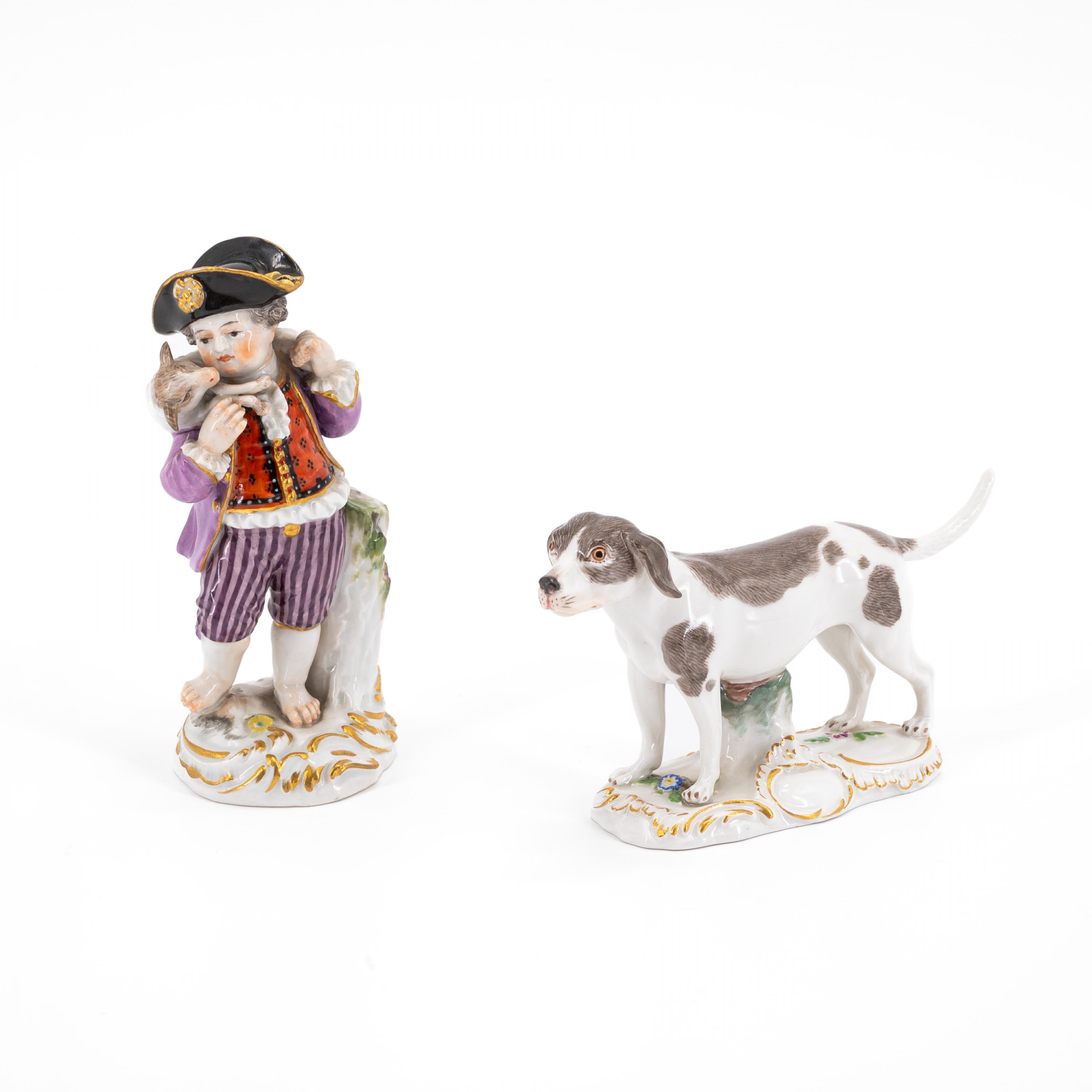 GÄRTNERKIND MIT LAMM UND HUNDEFIGUR.