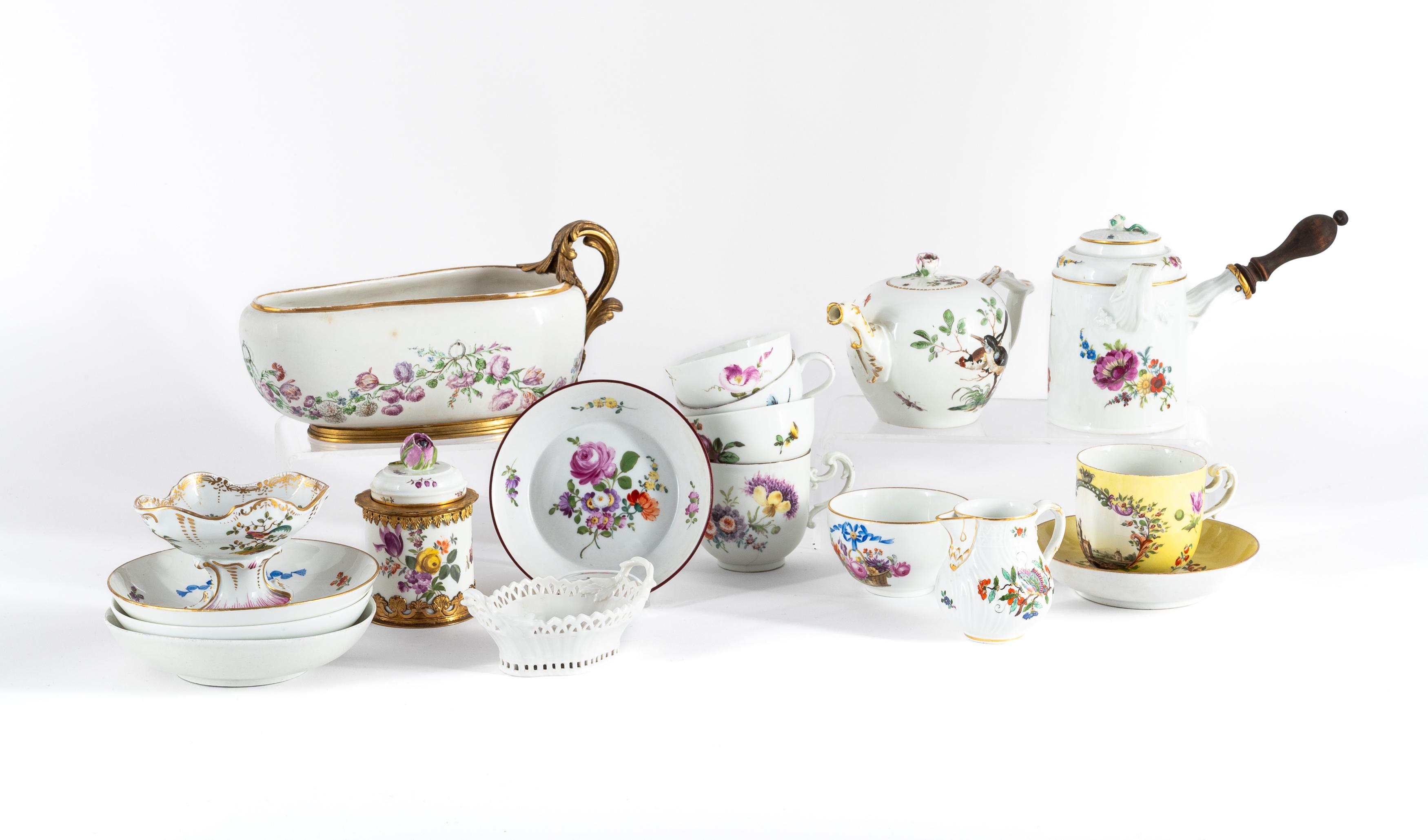 GRUPPE AUS 18 TEILEN MIT BLUMENDEKOREN.