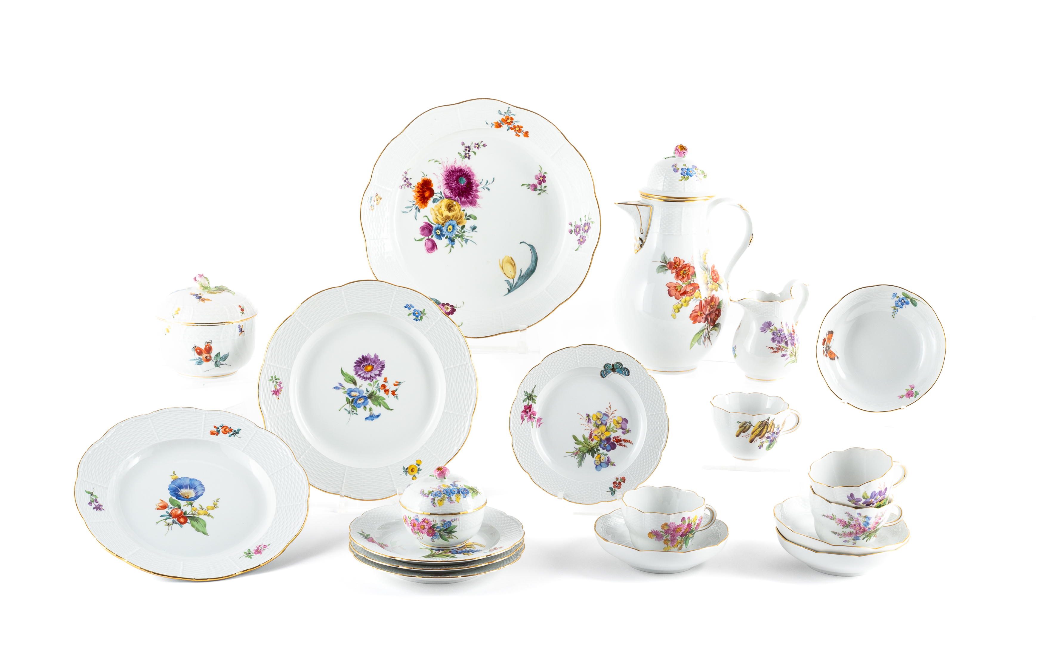 KAFFEESERVICE MIT FELDBLUMEN FÜR 12 PERSONEN.