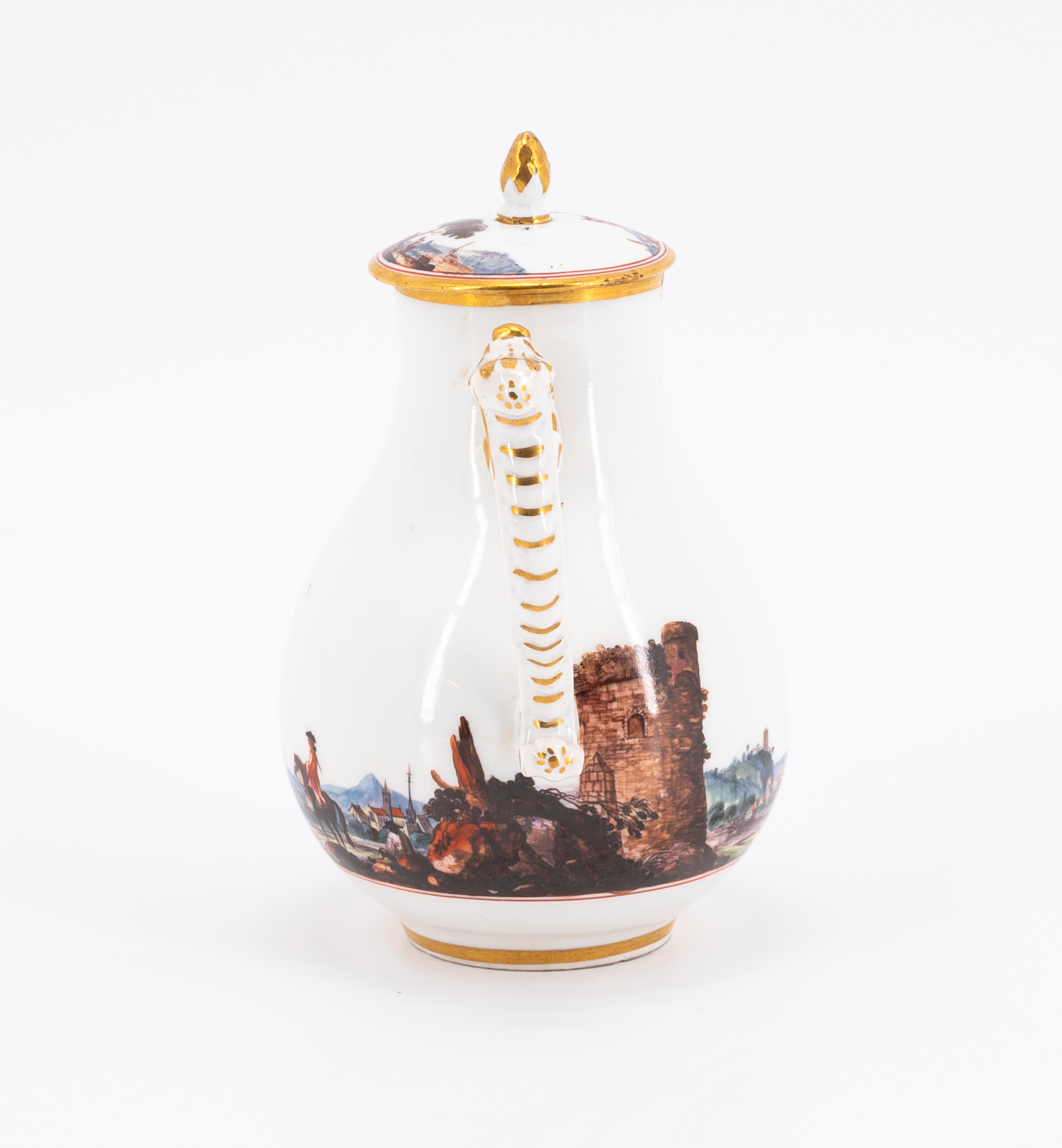 KLEINE KANNE MIT UMLAUFENDER LANDSCHAFTSMALEREI.