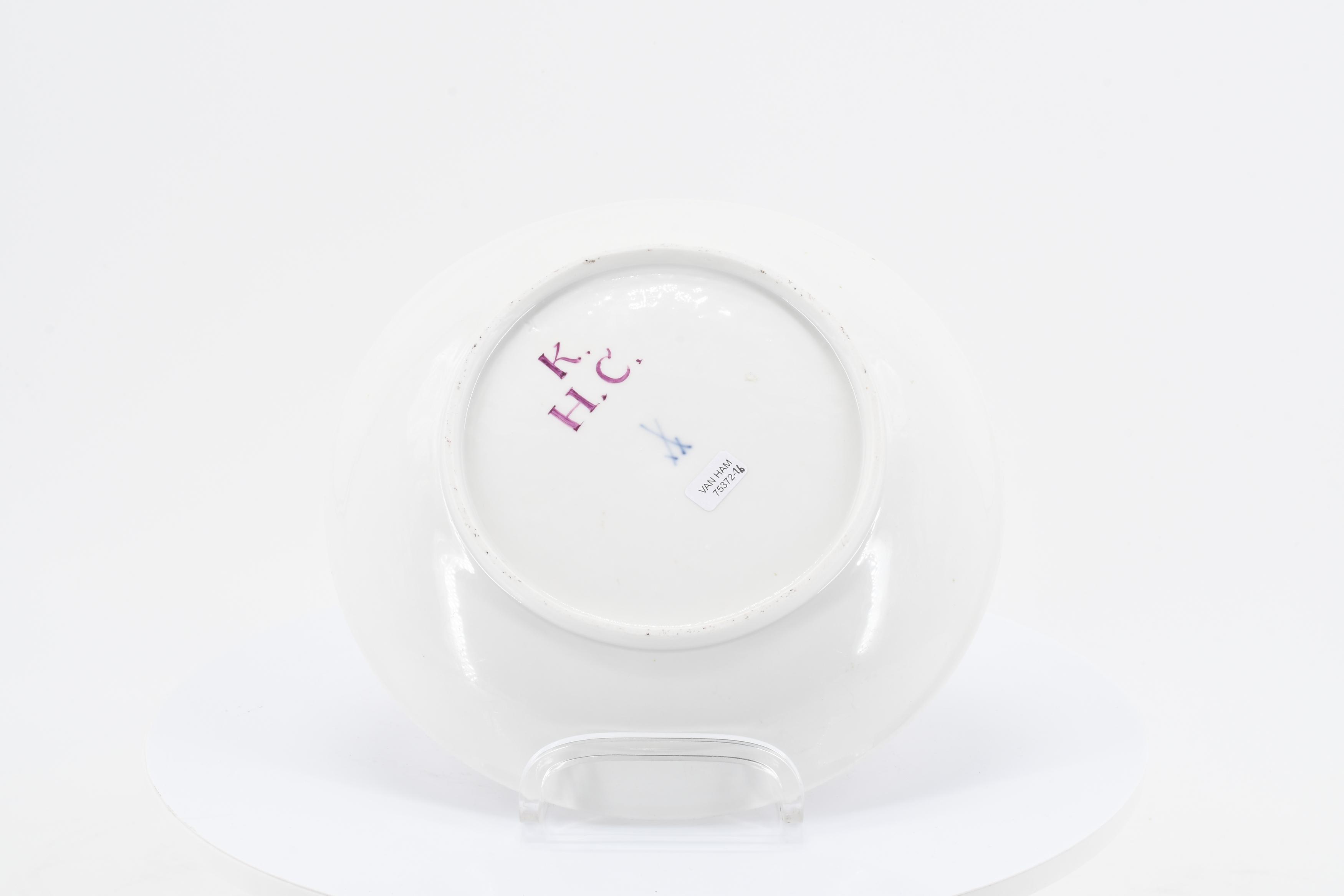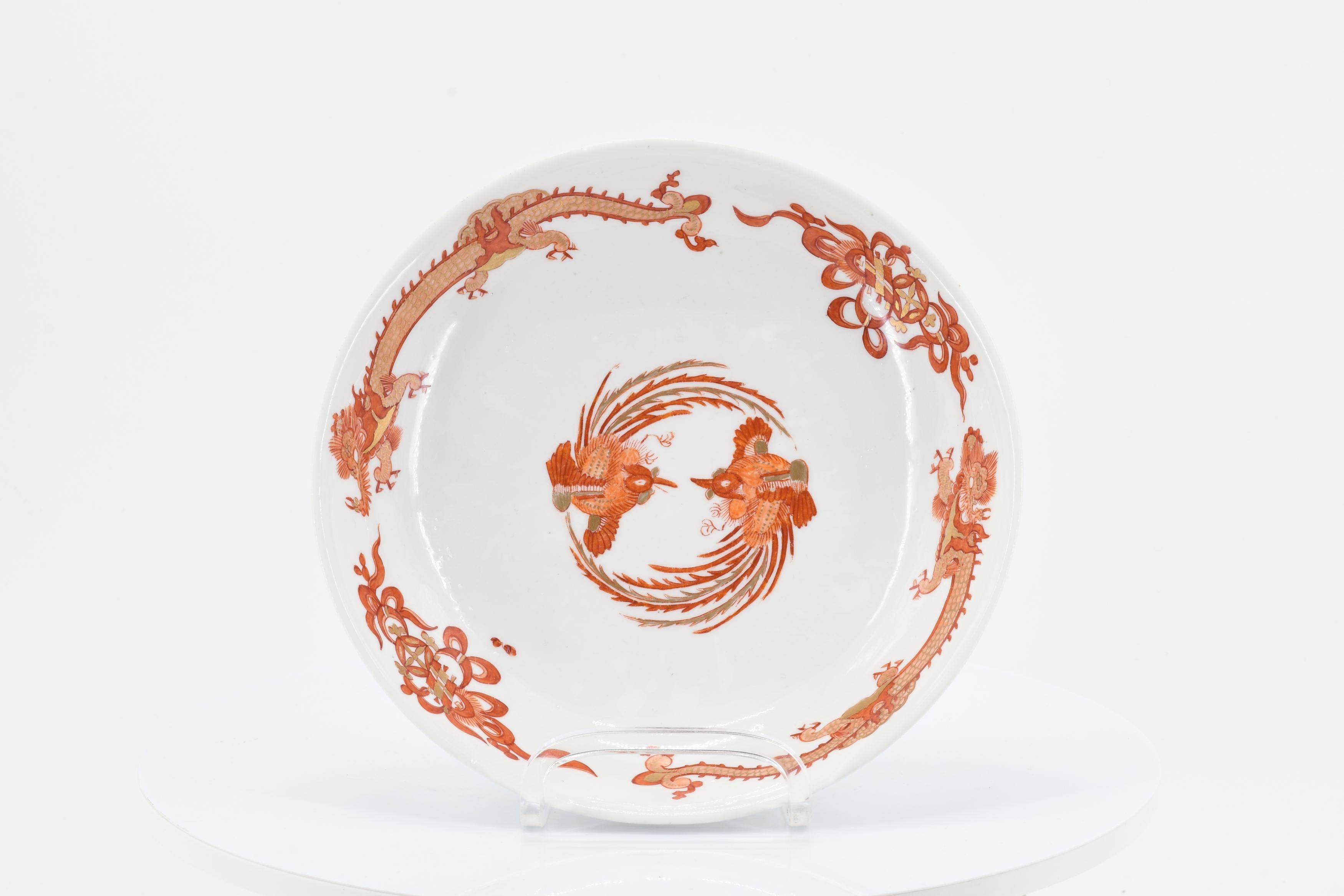 Beschreibung: Die flache, runde Schale entstammt dem sächsischen Hofservice mit 'Rotem Drachen'. Im
