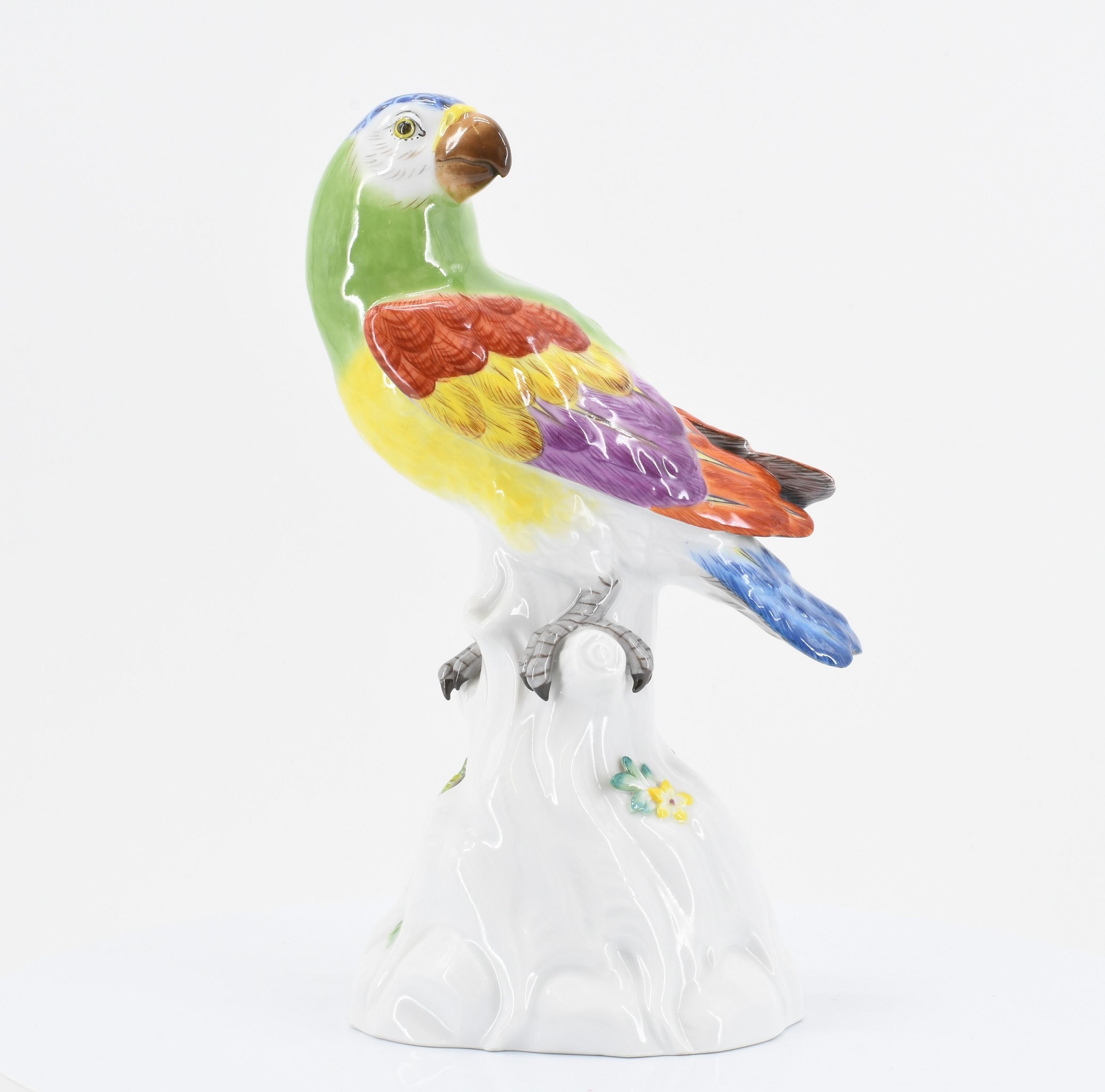 KLEINER PAPGEI AUF BAUMSTUMPF.