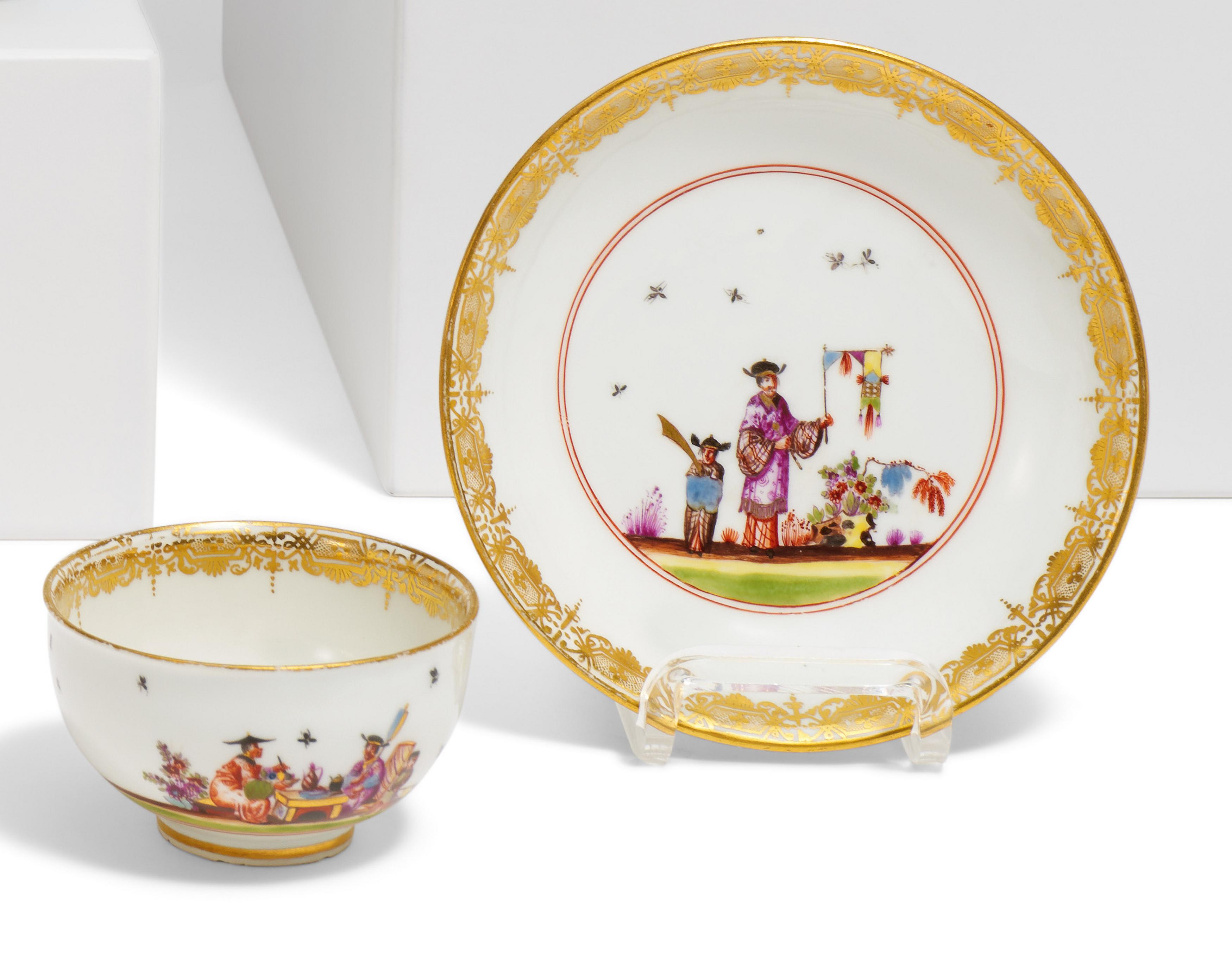 KOPPCHEN UND UNTERSCHALE MIT CHINOISERIEN.