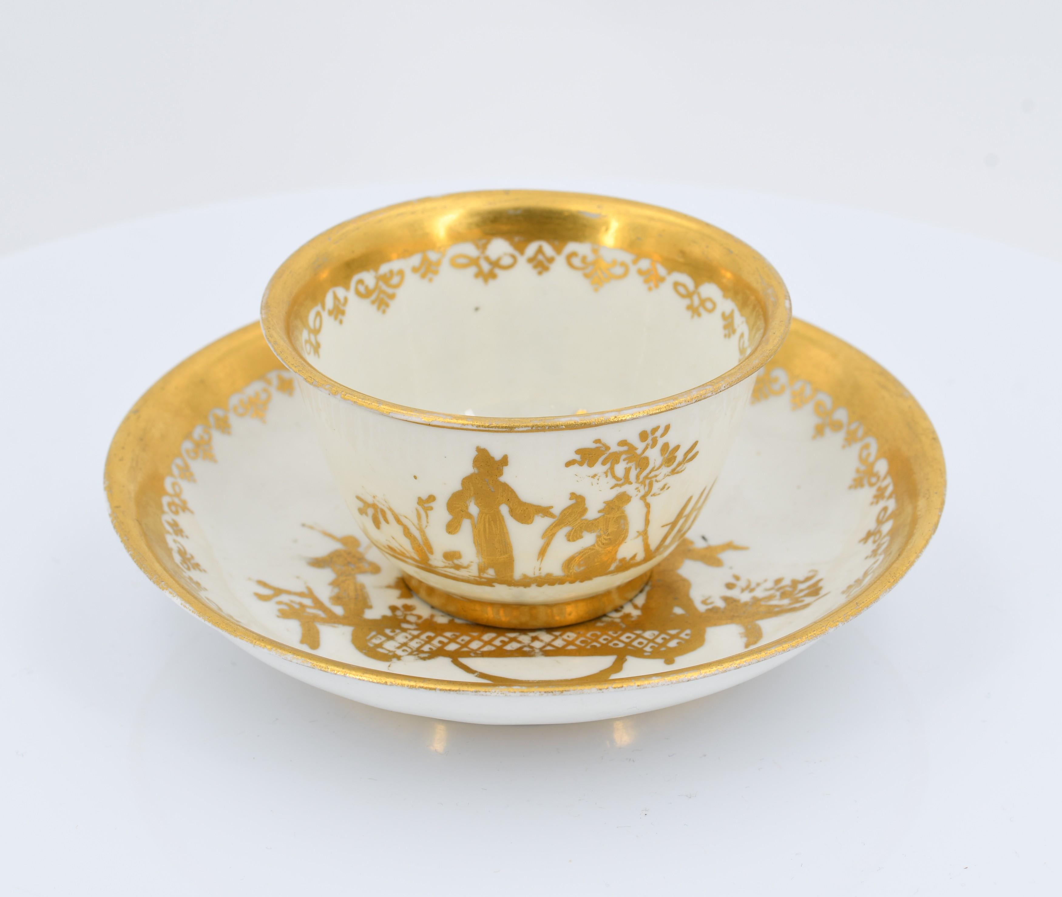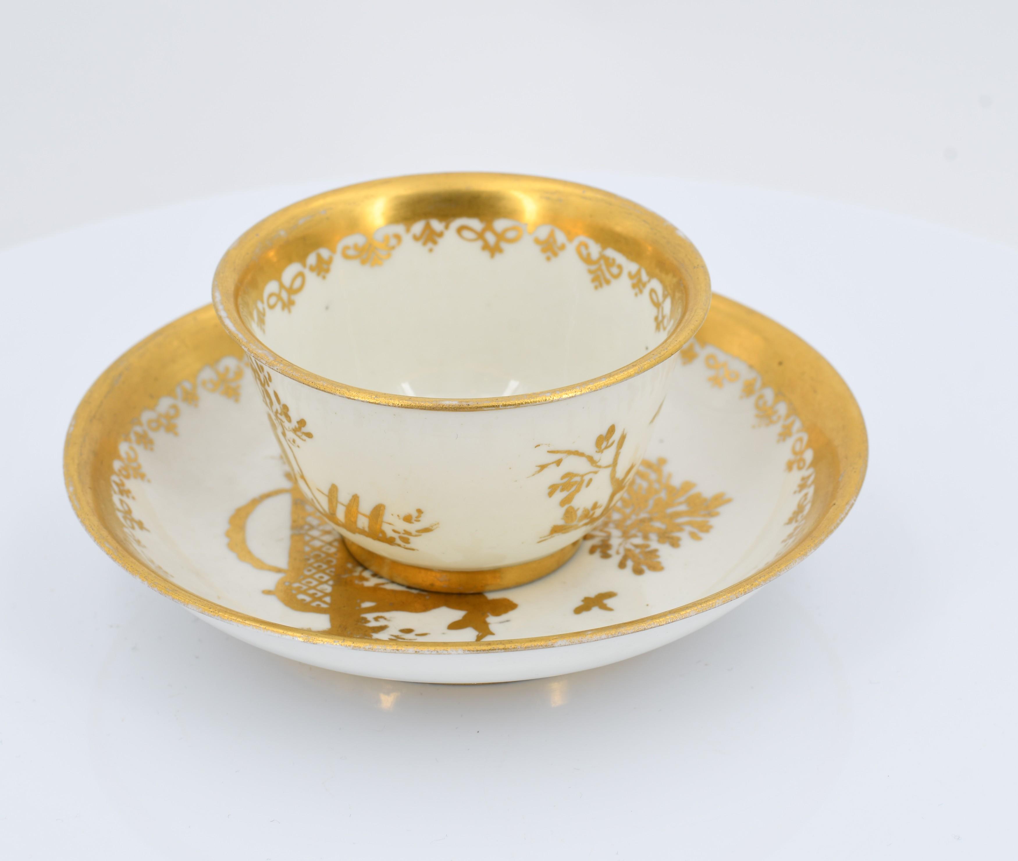 KOPPCHEN UND UNTERTASSE MIT GOLDCHINESEN.