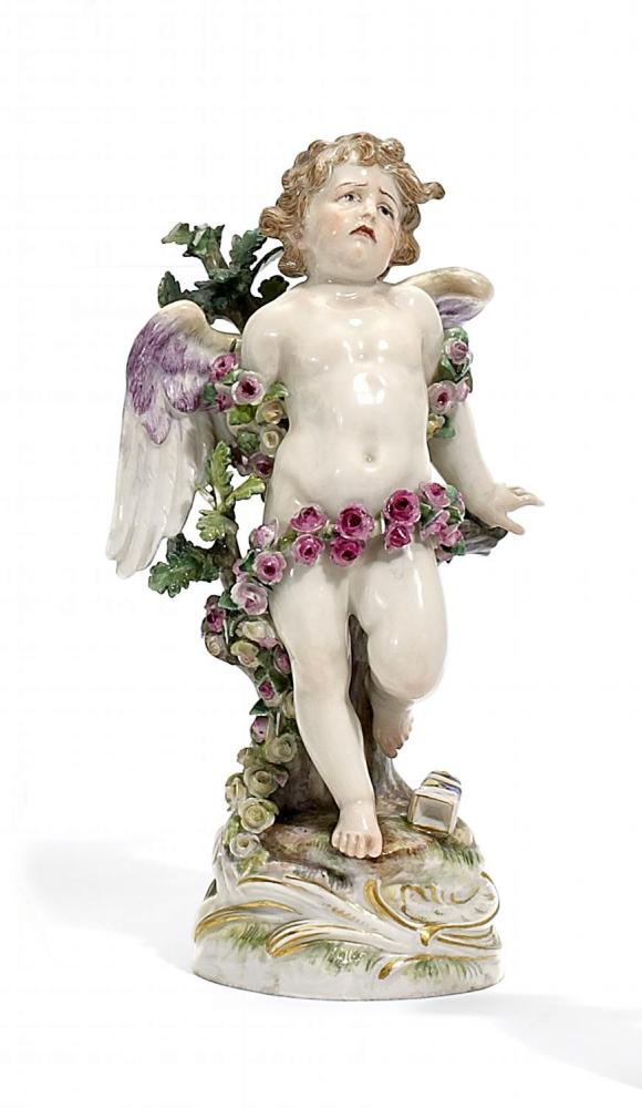 Porzellan, farbig und gold staffiert. Höhe 17 cm.