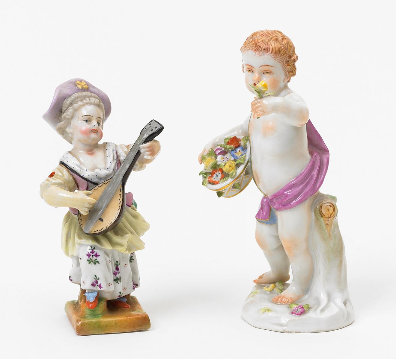 Porzellan, farbig staffiert. {Beil.:} Lautespielerin. Meissen. H.13 cm.