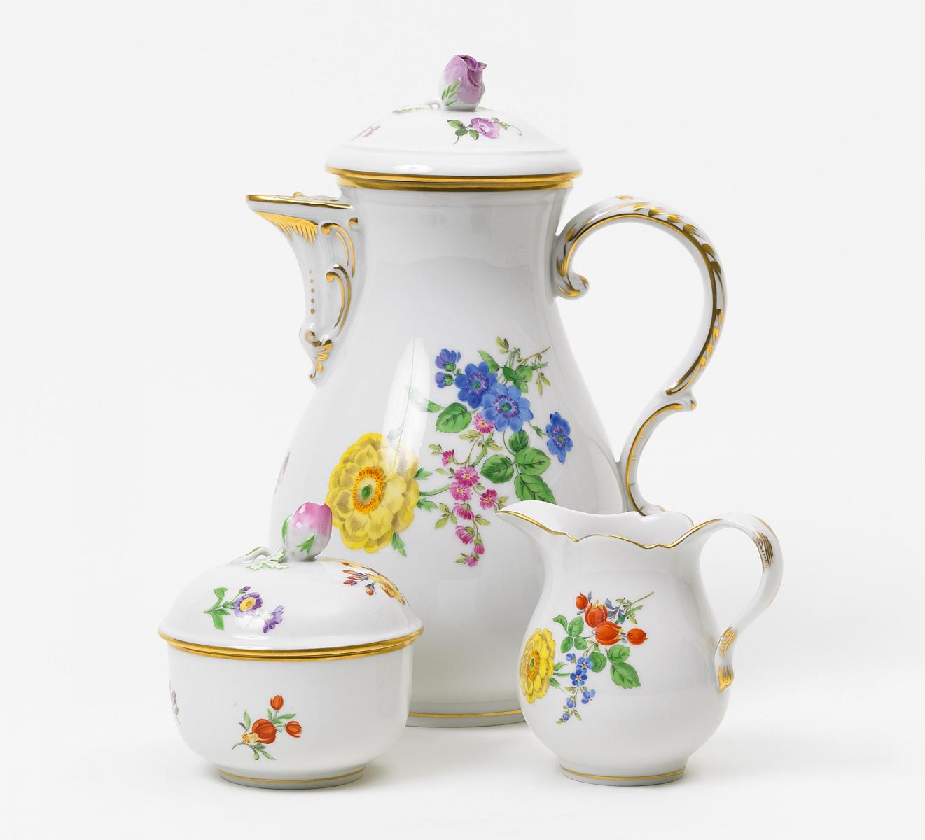 KAFFEEKANNE, MILCHKÄNNCHEN UND ZUCKERDOSE.