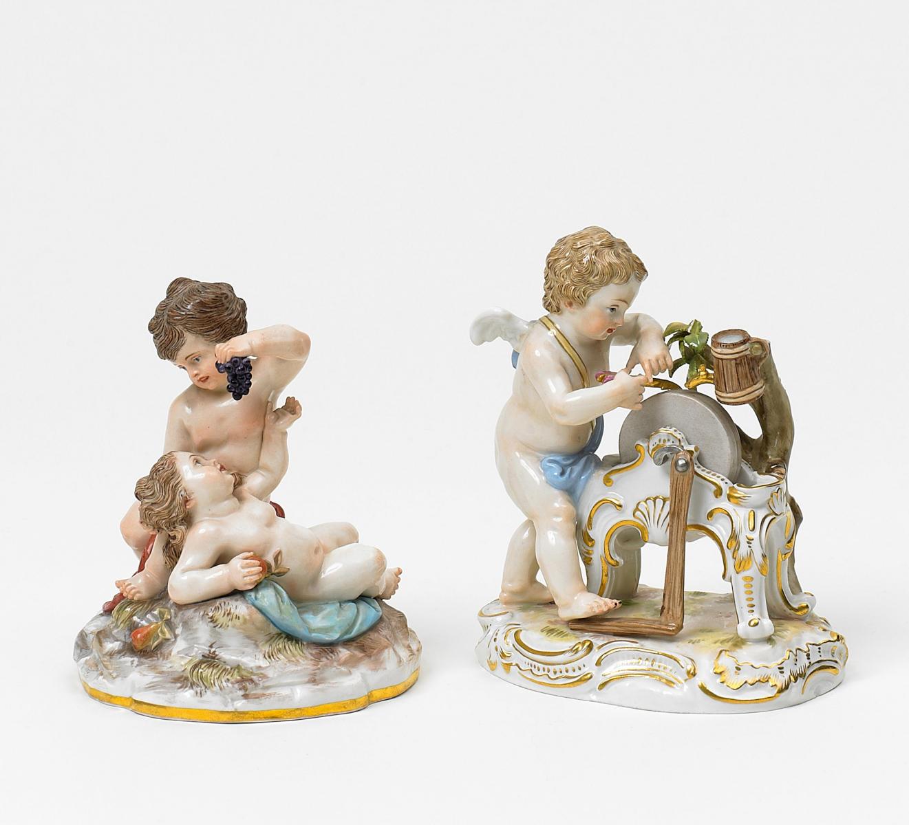 Porzellan, farbig und gold staffiert. H.11cm/12 cm.