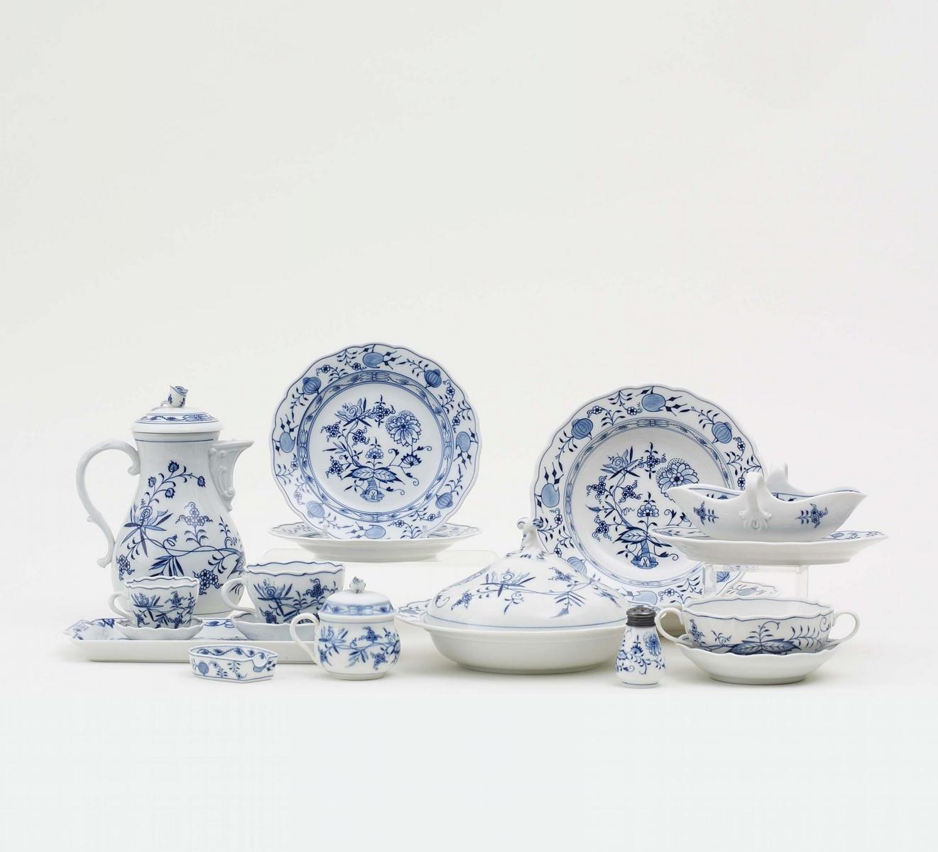 Porzellan, blaues Unterglasurdekor. Insg. 149 Teile, best. aus 10 Kaffeetassen, 8 Kaffee-UT, 7 Mokkatassen, 7 Mokka-UT, 6