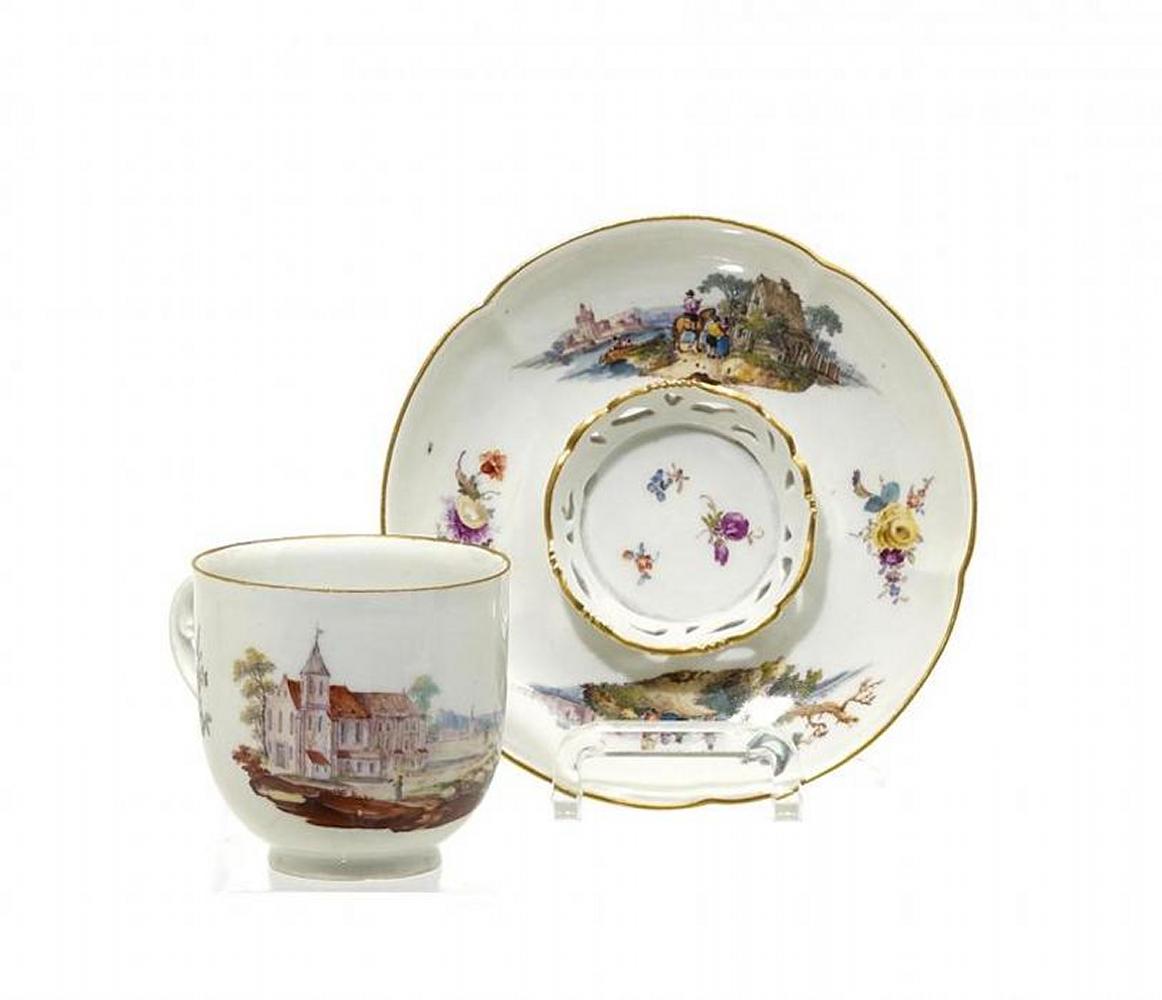 Schwertermarke. Tasse mit Pressnummer 17, Unterschale mit 63. Zustand B. Tasse wohl etwas später.