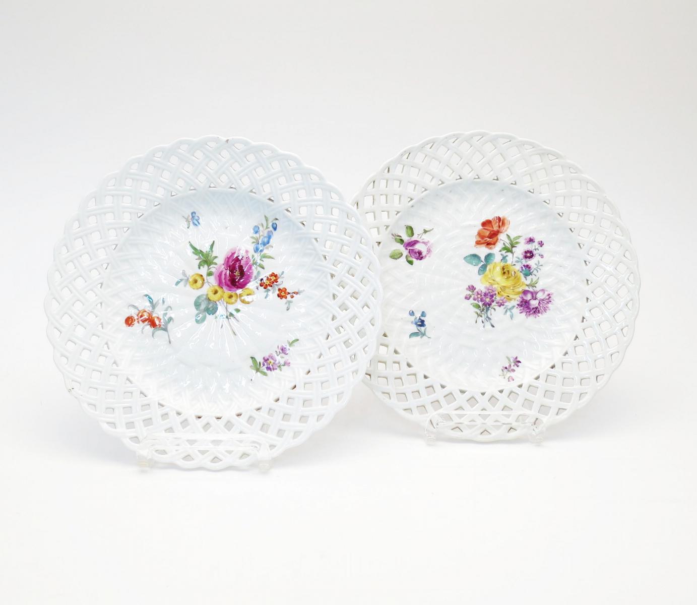 2 TELLER MIT DURCHBRUCHRAND UND BLUMENDEKOR.