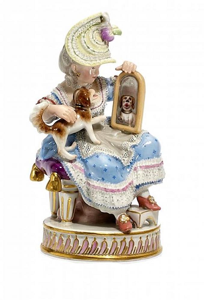 DAME MIT HÜNDCHEN UND SPIEGEL.