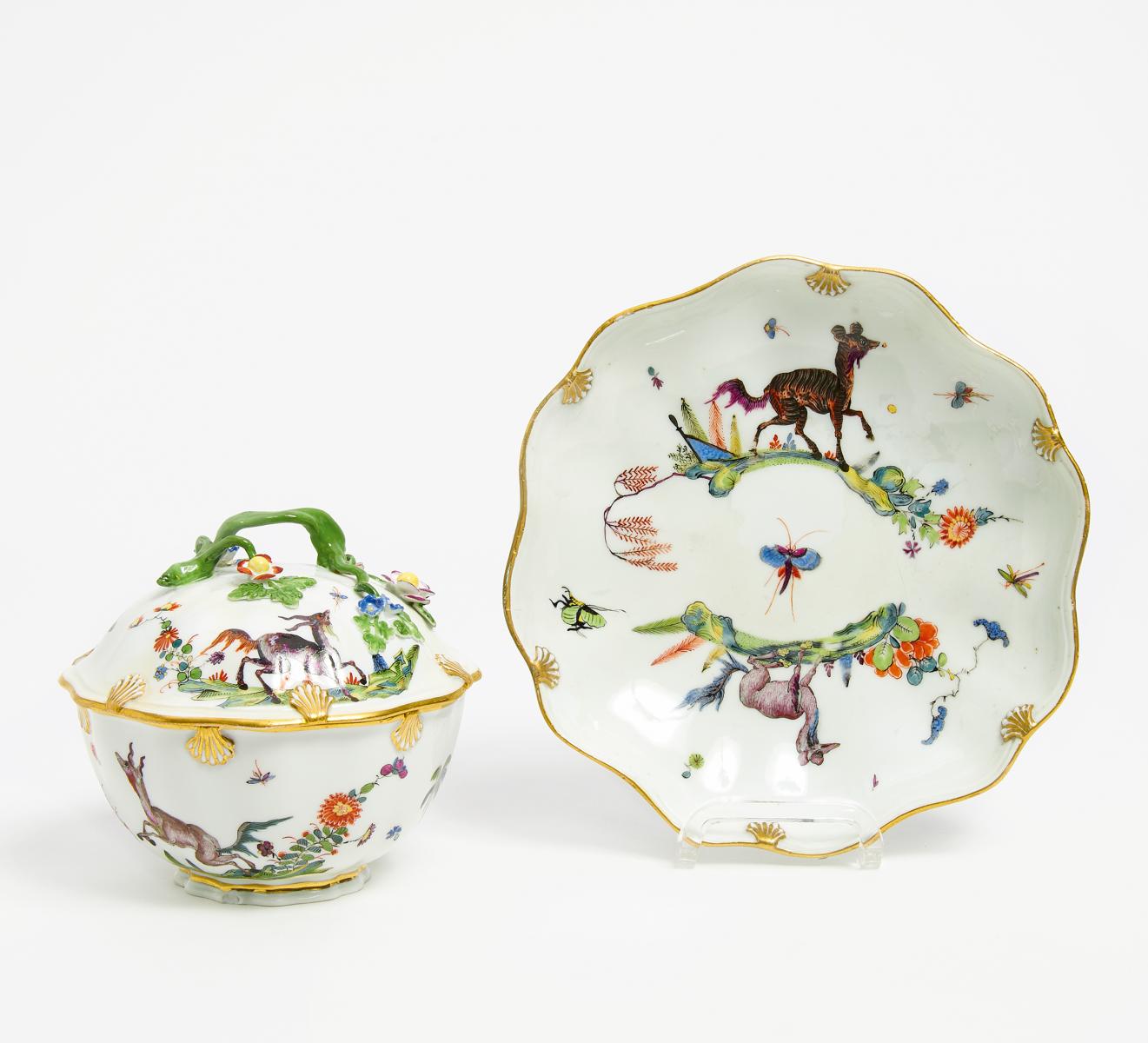 KLEINE TERRINE AUF UNTERSATZ MIT FABELWESEN.