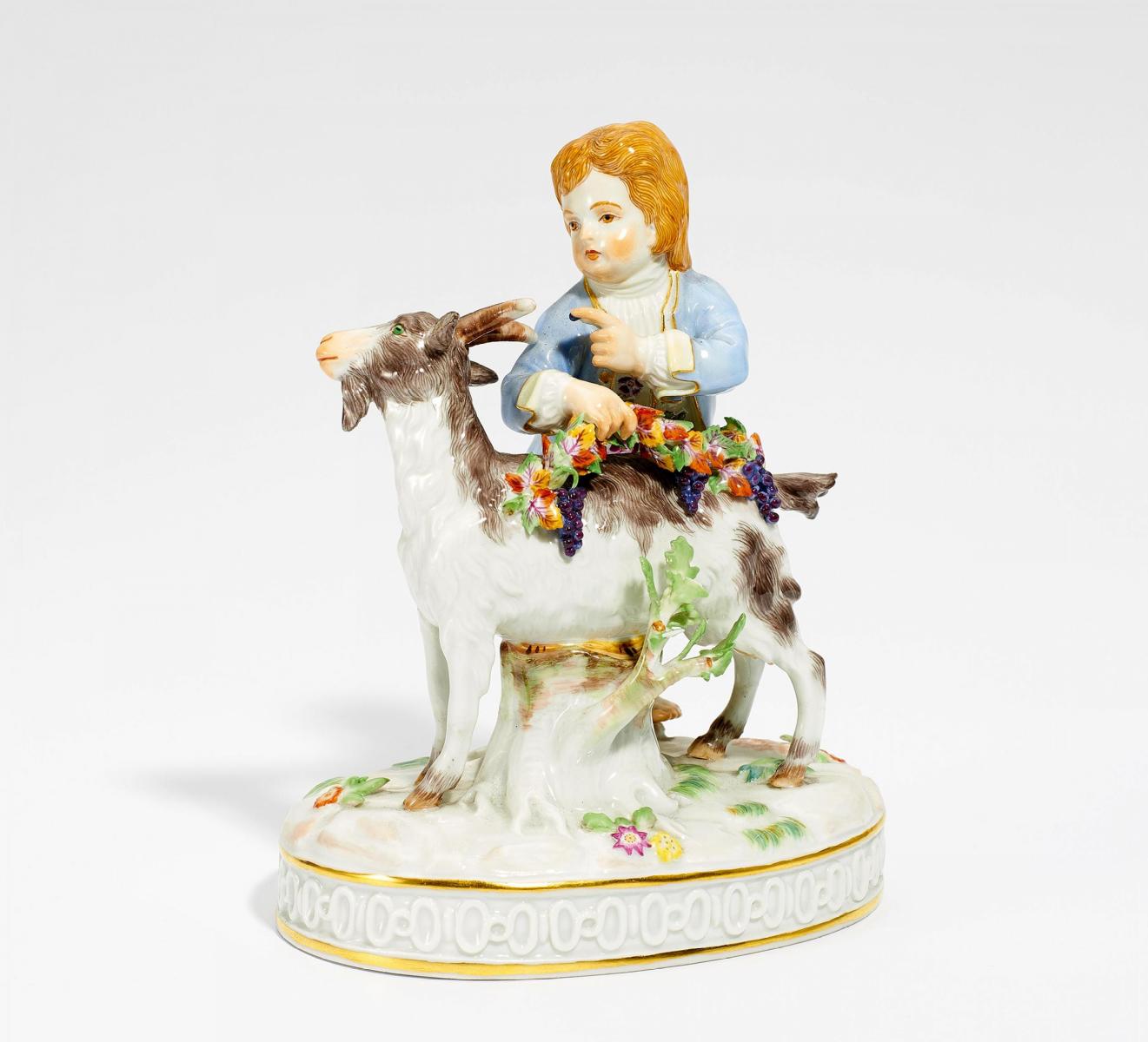 KLEINER JUNGE MIT ZIEGENBOCK.