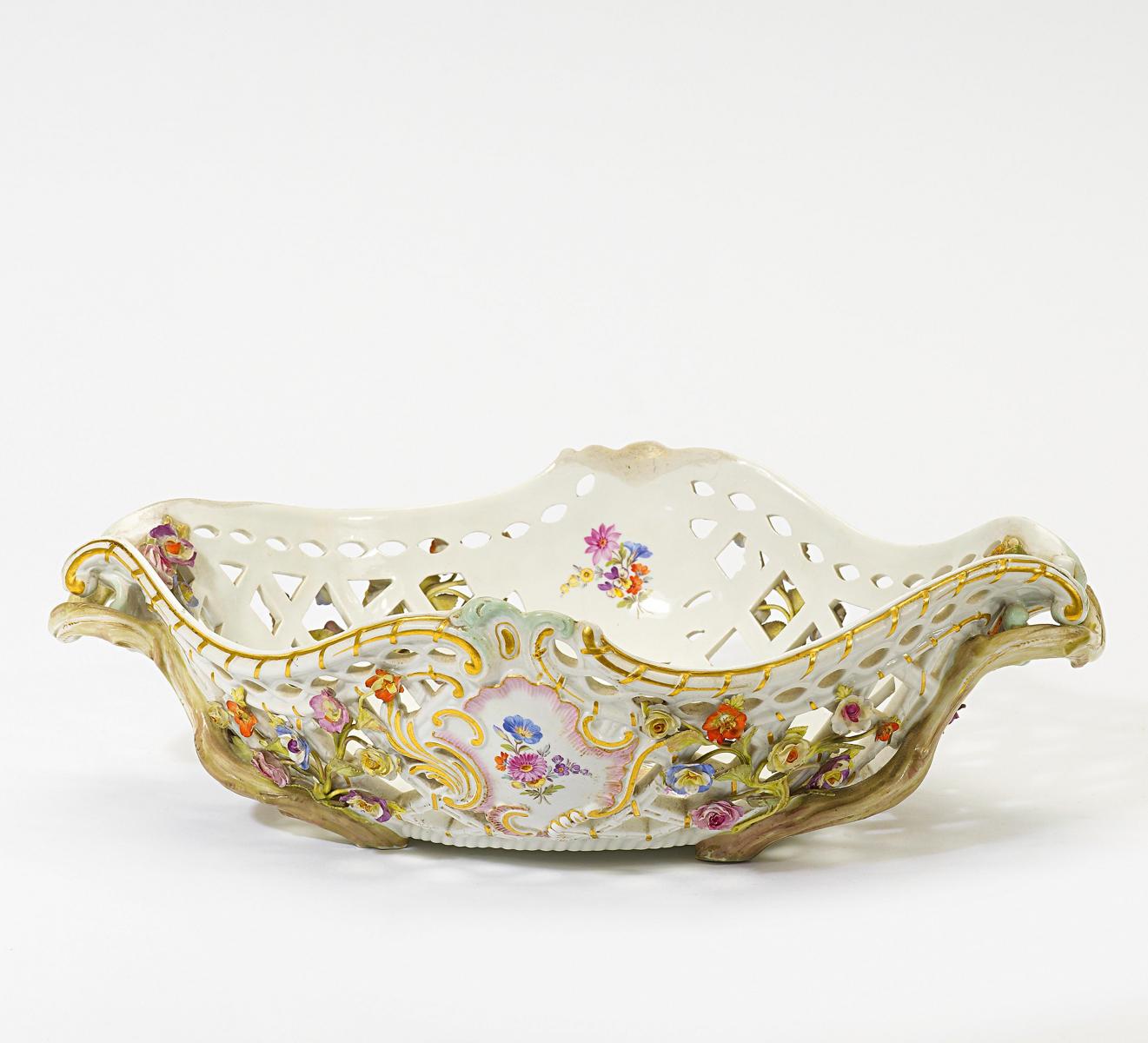 OBSTKORB MIT AUFGELEGTEM BLÜTENDEKOR.