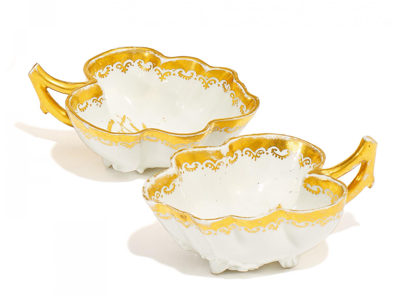 PAAR KLEINE BLATTSCHALEN MIT GOLDDEKOR.