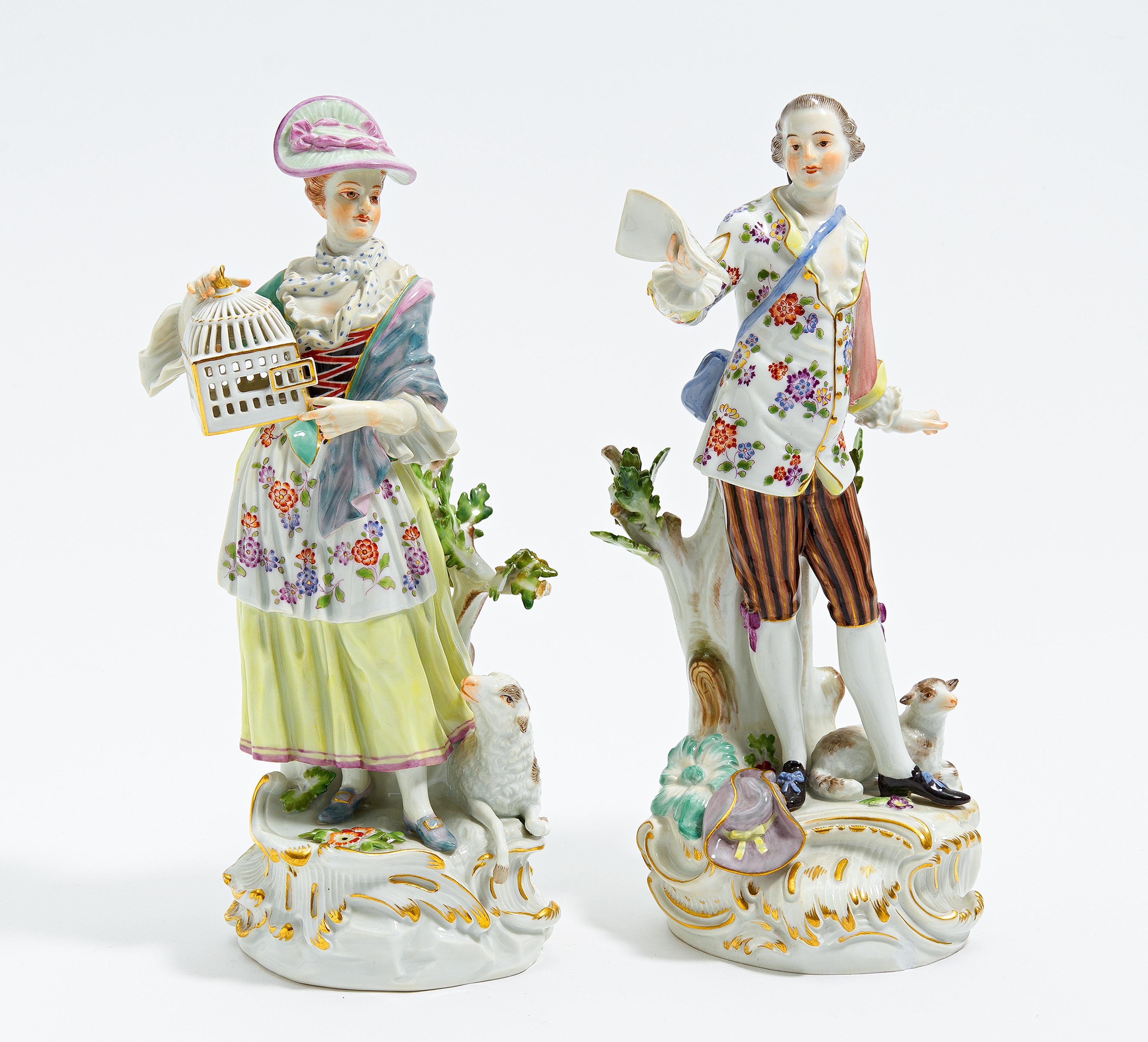 SCHÄFER MIT NOTENBLATT & SCHÄFERIN MIT VOGELBAUER.