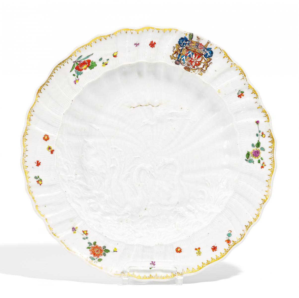 "Mit dem im Auftrag von Heinrich Graf von Brühl geschaffenen Schwanenservice erreichte die um 1730 begonnene Entwicklungsgeschichte des Tafelgeschirrs aus Porzellan bereits ihren künstlerischen Höhepunkt. Niemals zuvor war ein Service in diesem Umfang und mit einem solchen verschwenderischen Reichtum an plastischer Gestaltung geschaffen worden, (...)". (aus: Ausst.-Kat. Schwanenservice, 2000, S.24).