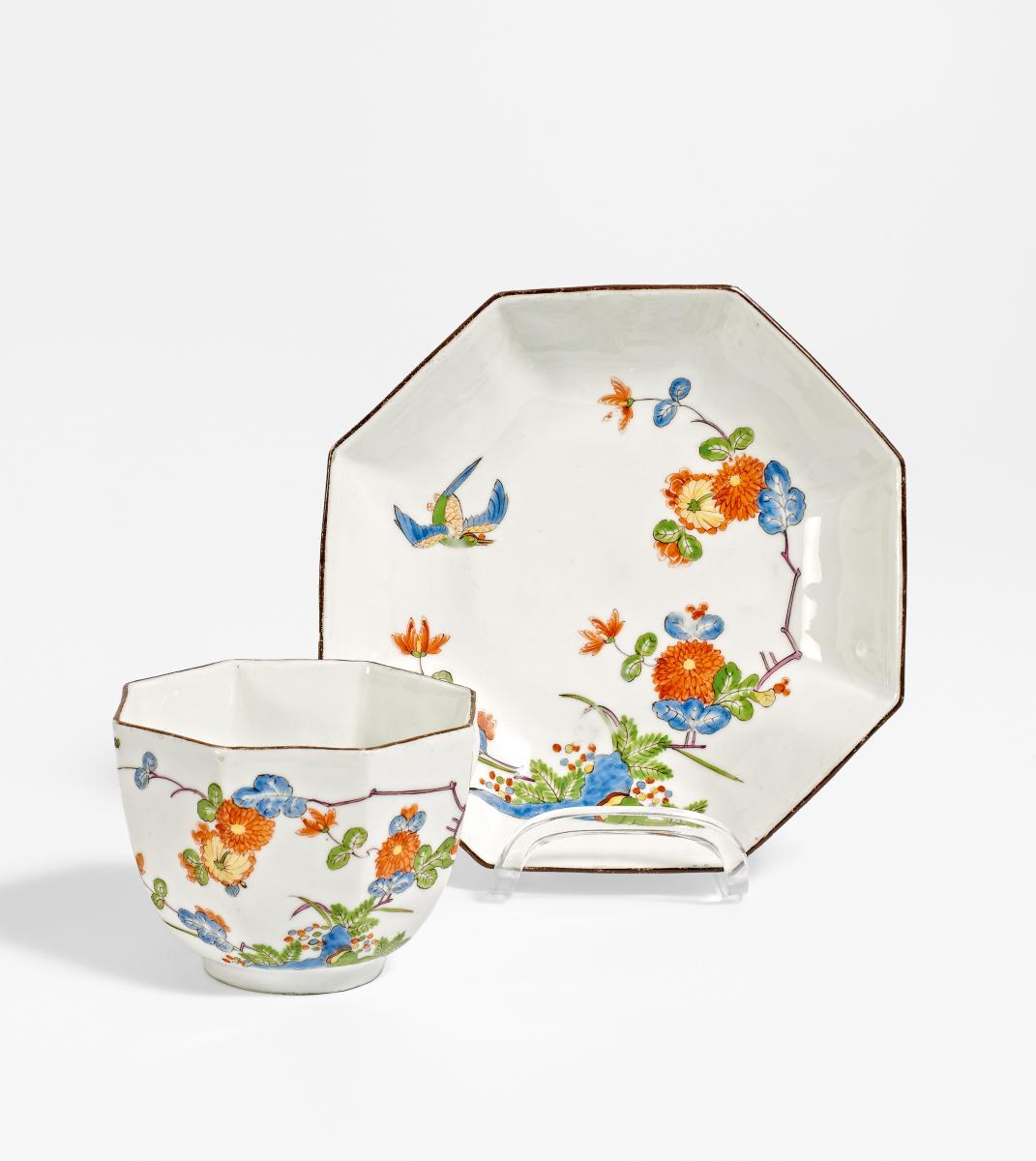 TASSE UND UNTERTASSE MIT KAKIEMONDEKOR.