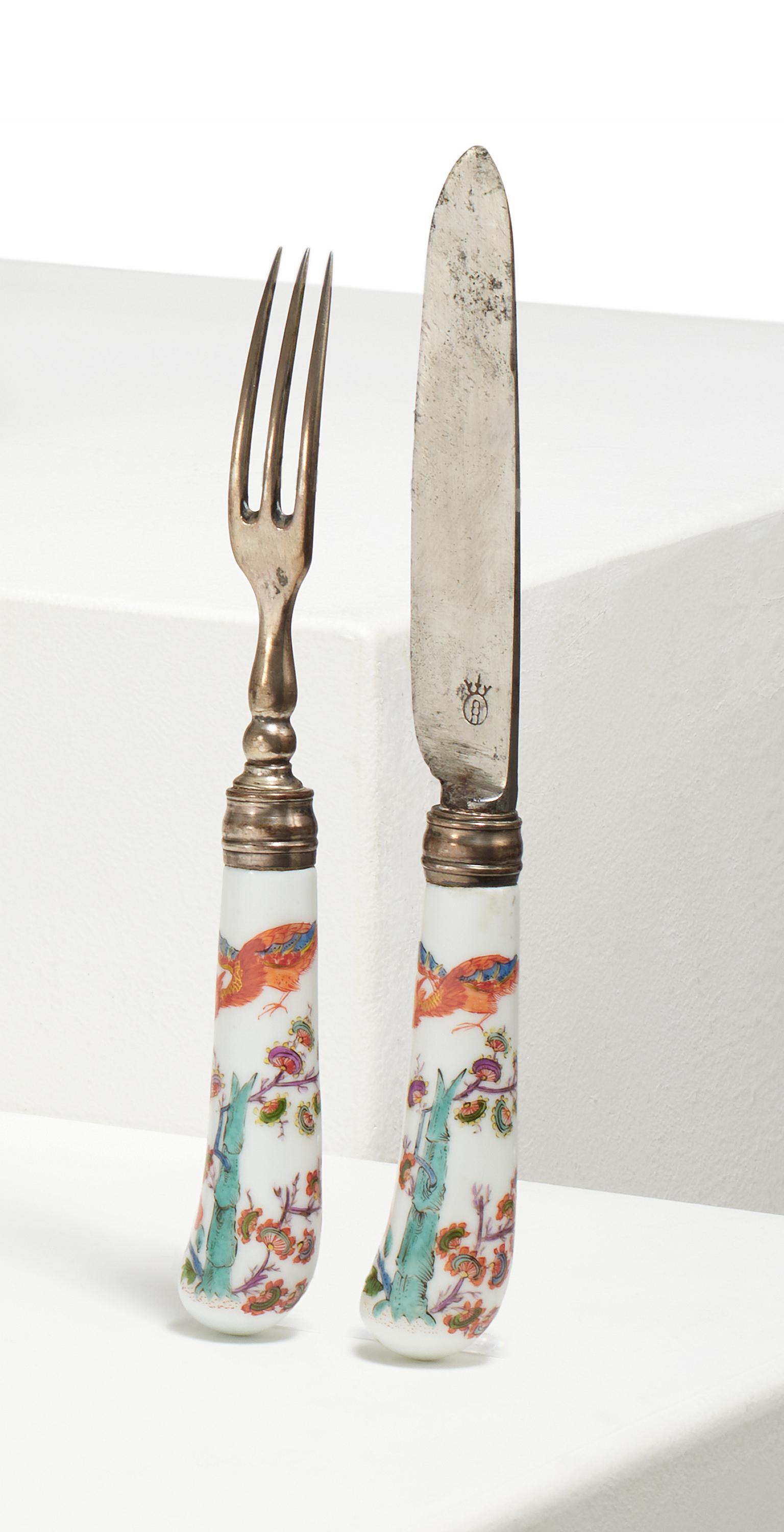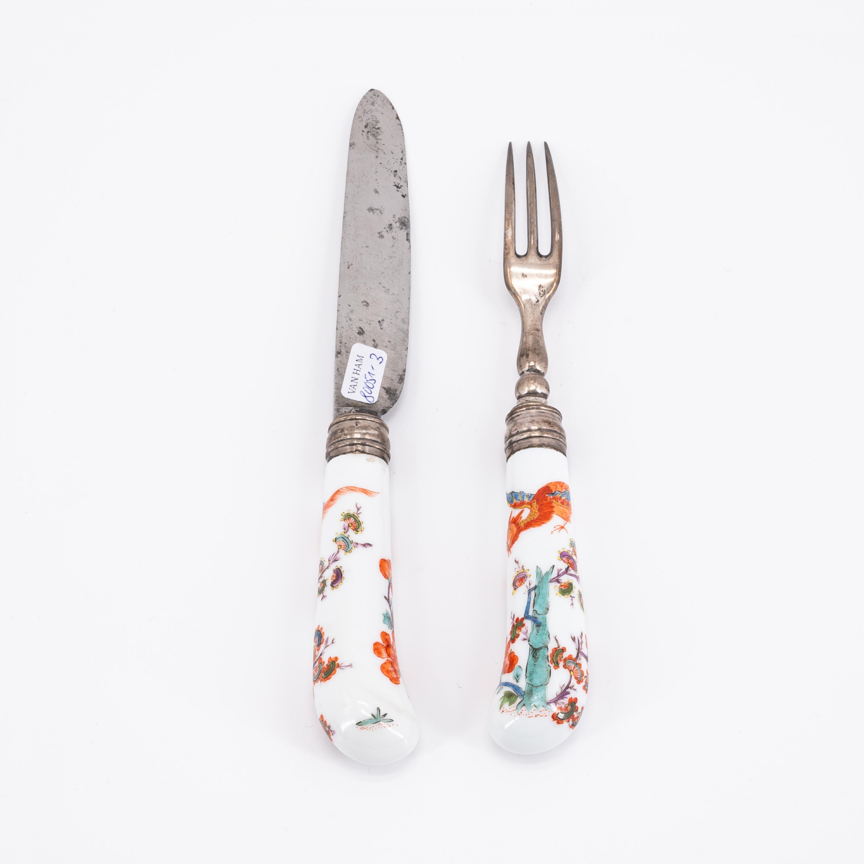 MESSER UND GABEL MIT PORZELLANGRIFFEN.