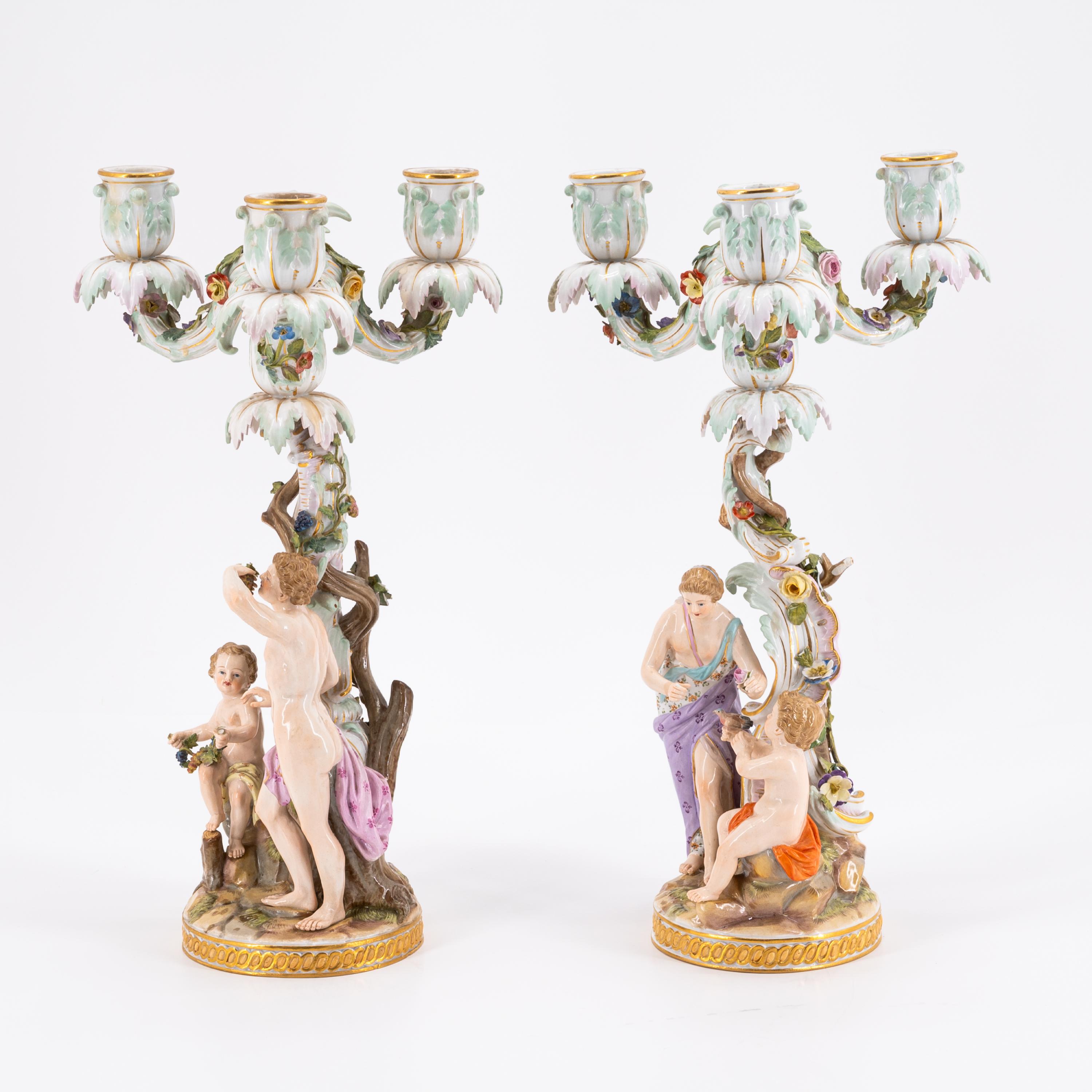 PAAR LEUCHTER MIT FIGURENZIER ALS ALLEGORIEN DES FRÜHLINGS UND HERBSTES.