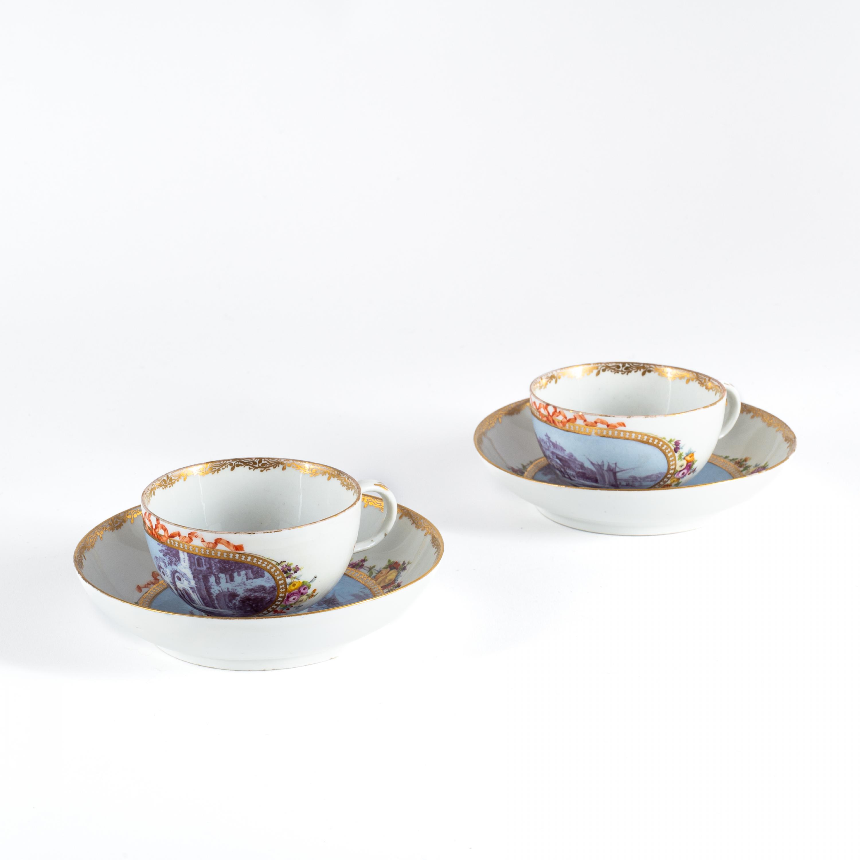 Maße: Höhe der Tassen 4,5/4,5cm; ø der Untertassen 13,4/13,3cm.