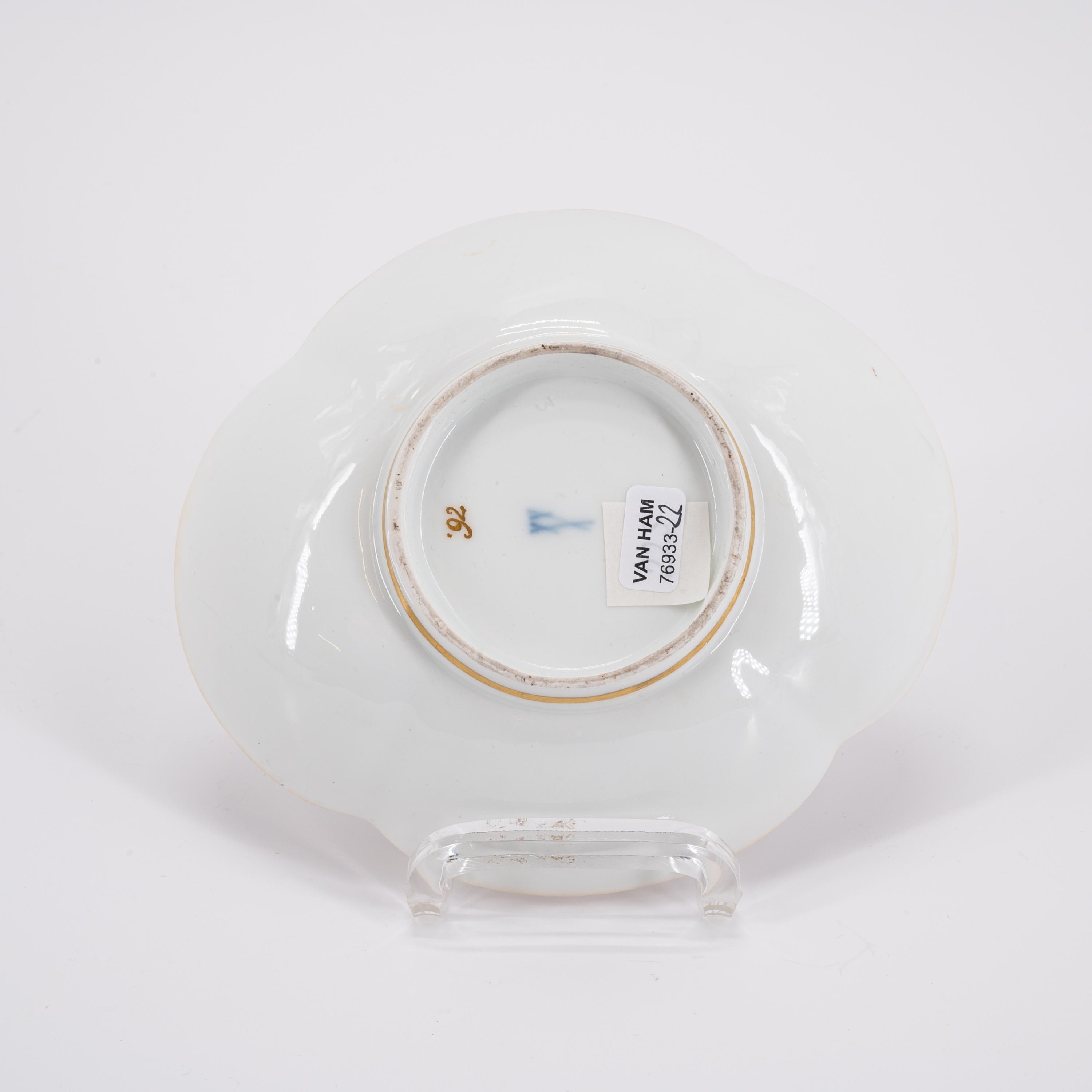 PASSIGE SCHALE MIT BURGANSICHT & TASSE MIT UNTERTASSE UND GALANTEN SZENEN.