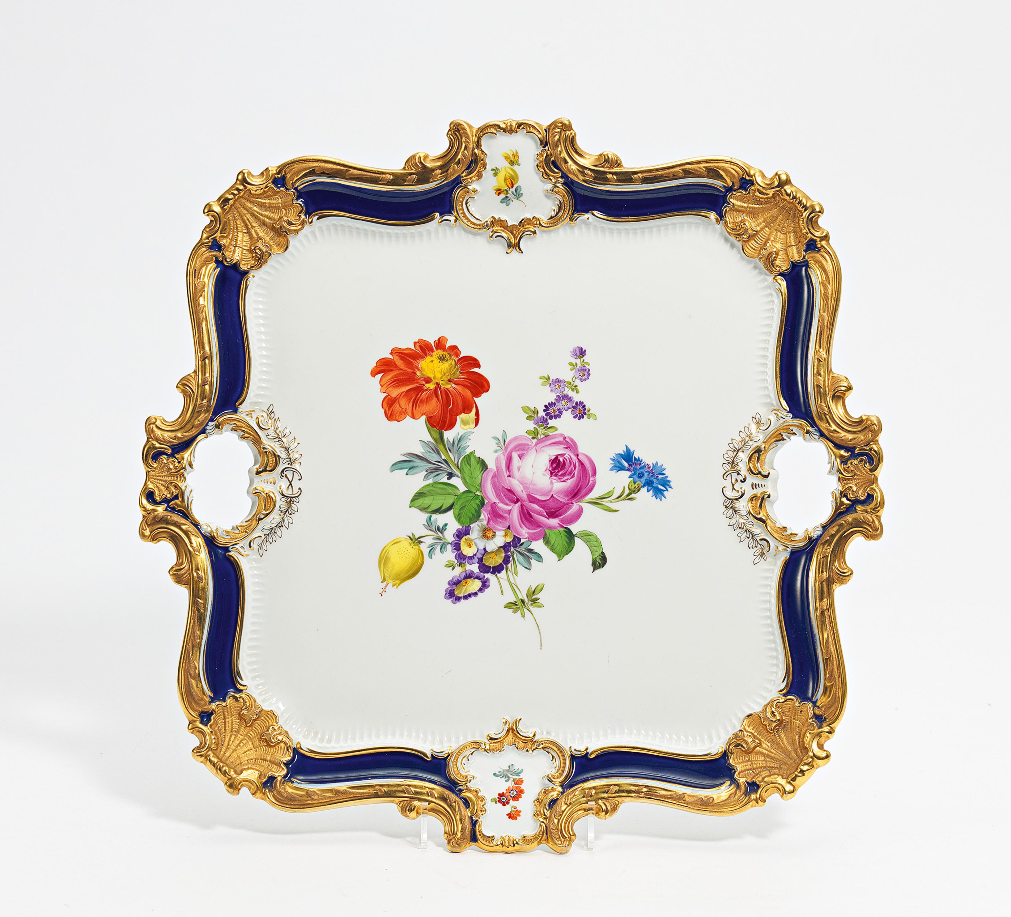 PRUNKTABLETT MIT BLUMENBOUQUET.
