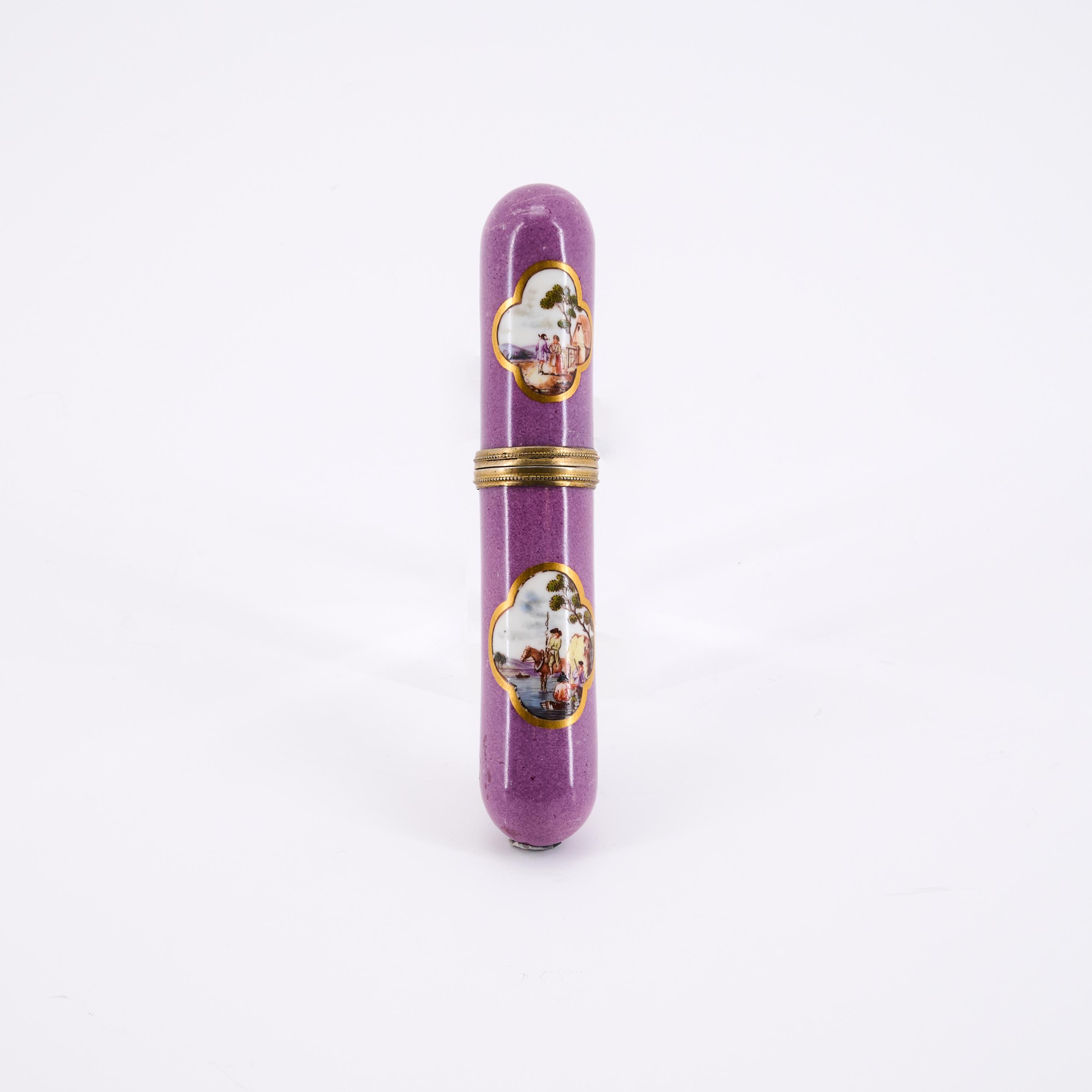 PURPURFOND NADELBÜCHSE MIT LANDSCHAFTEN.