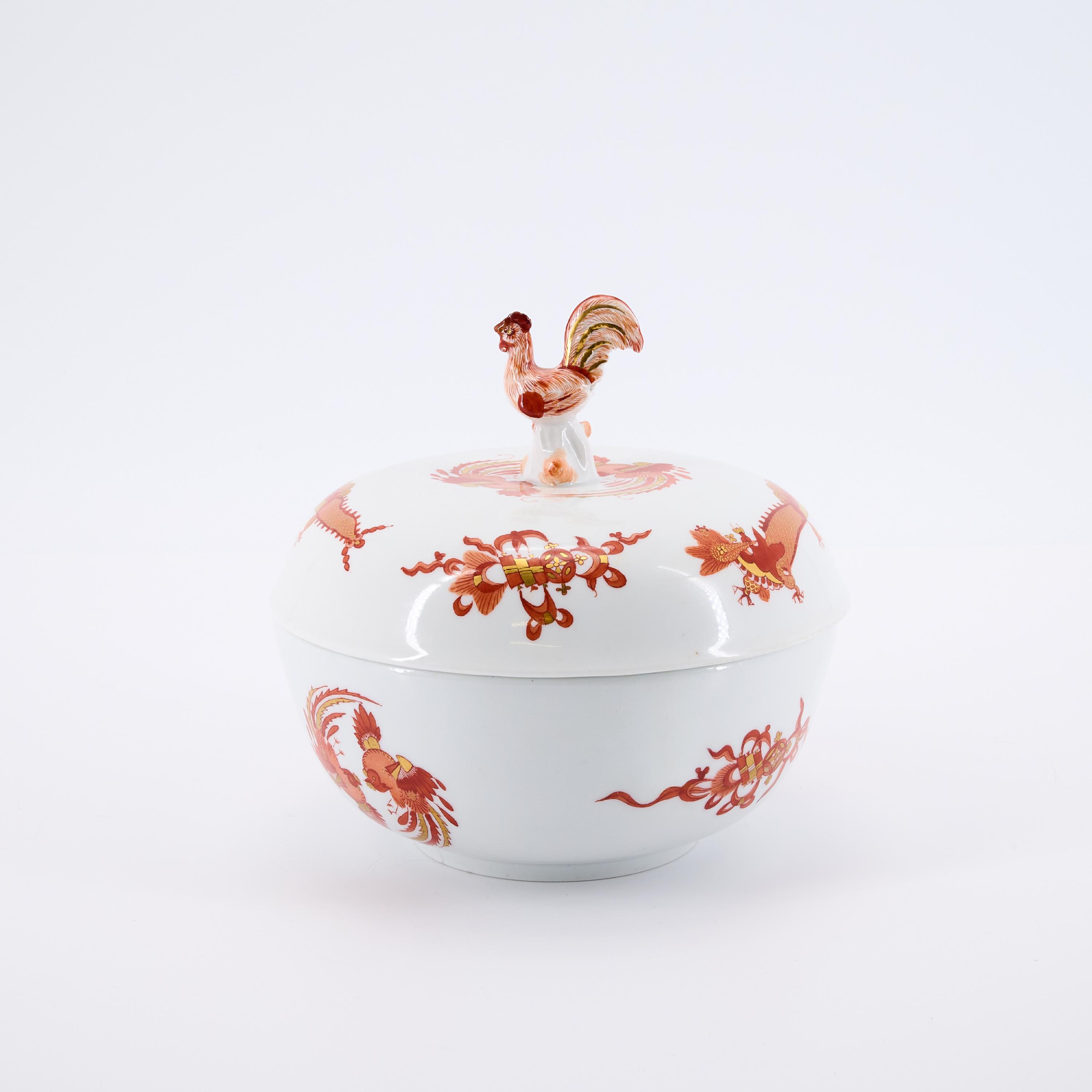 Titel: Runde Terrine mit plastischem Knauf 'Roter Hofdrache'.