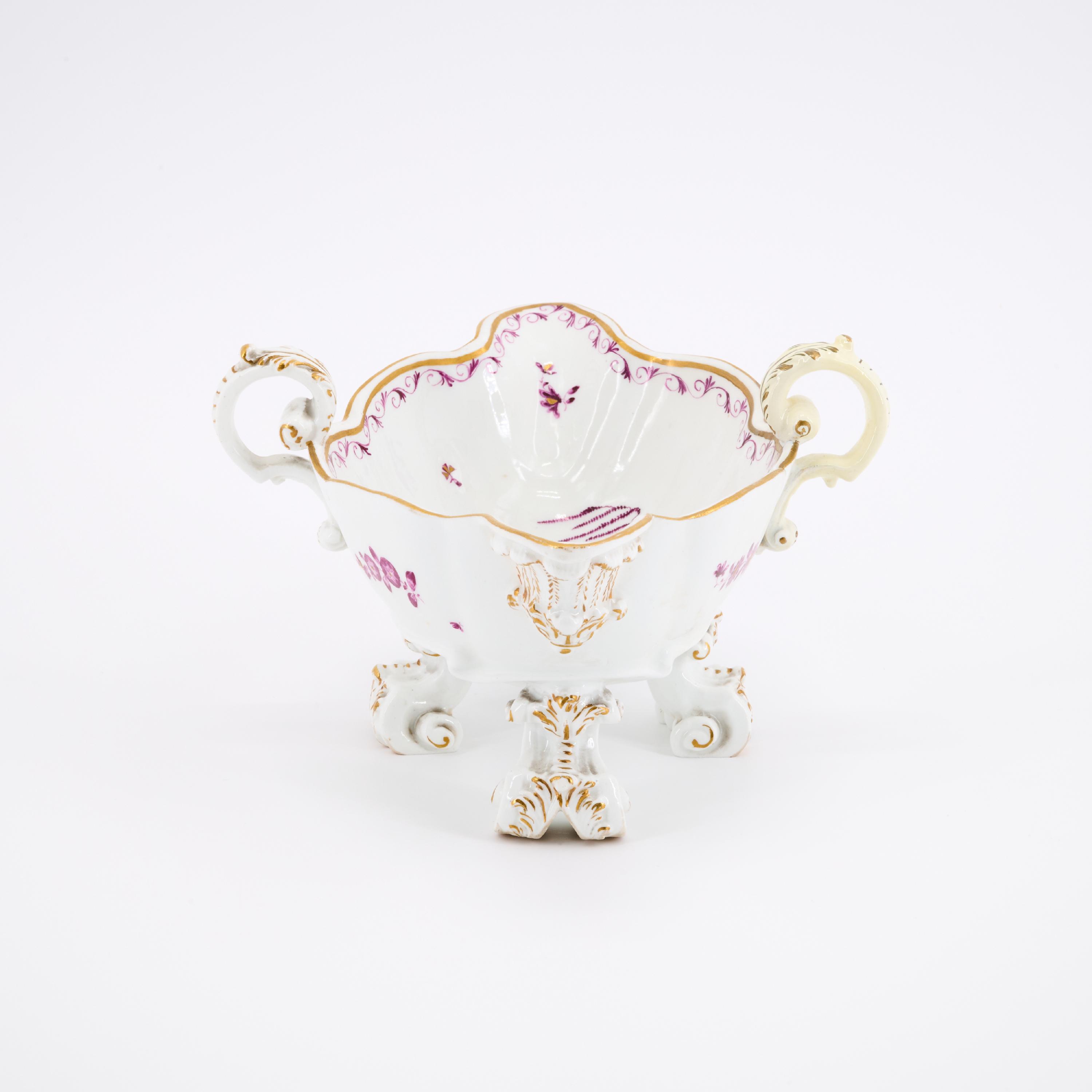 Technik: Porzellan, reliefiert, farbig staffiert, gold dekoriert.