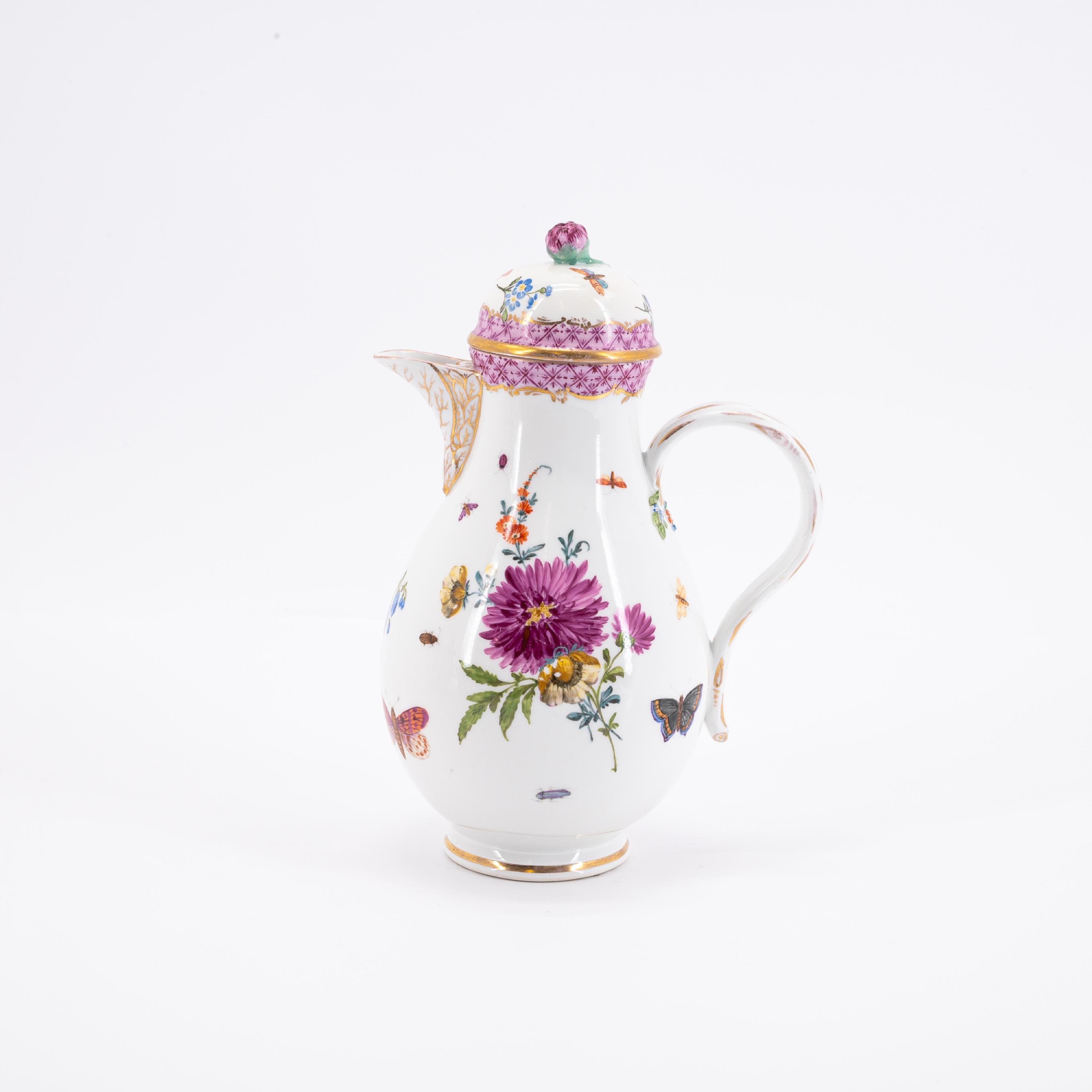SAUCIERE MIT MASKARONS, KAFFEEKANNE UND EISGEFÄß MIT BLUMENDEKOREN.