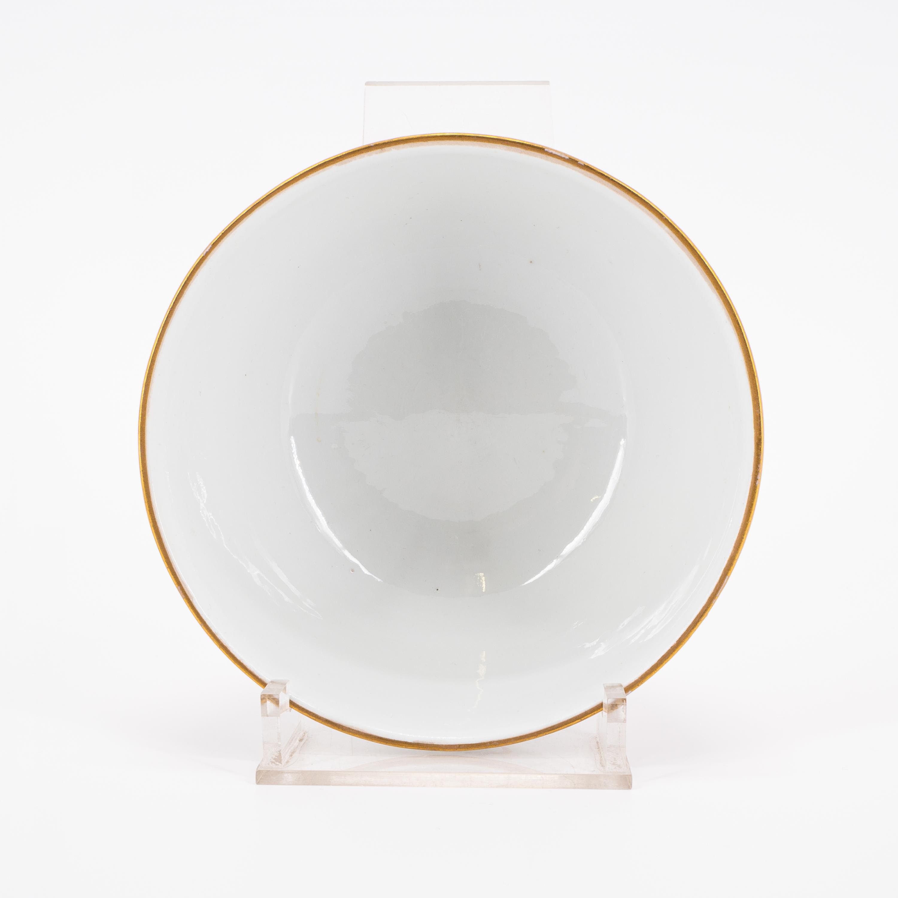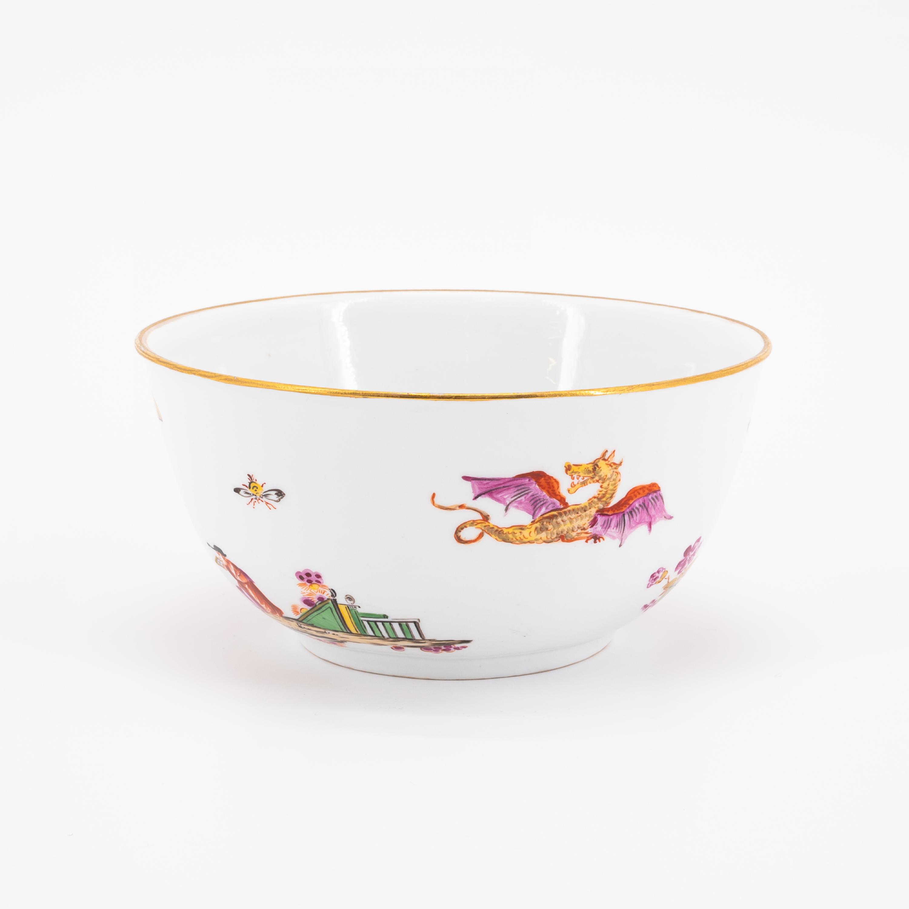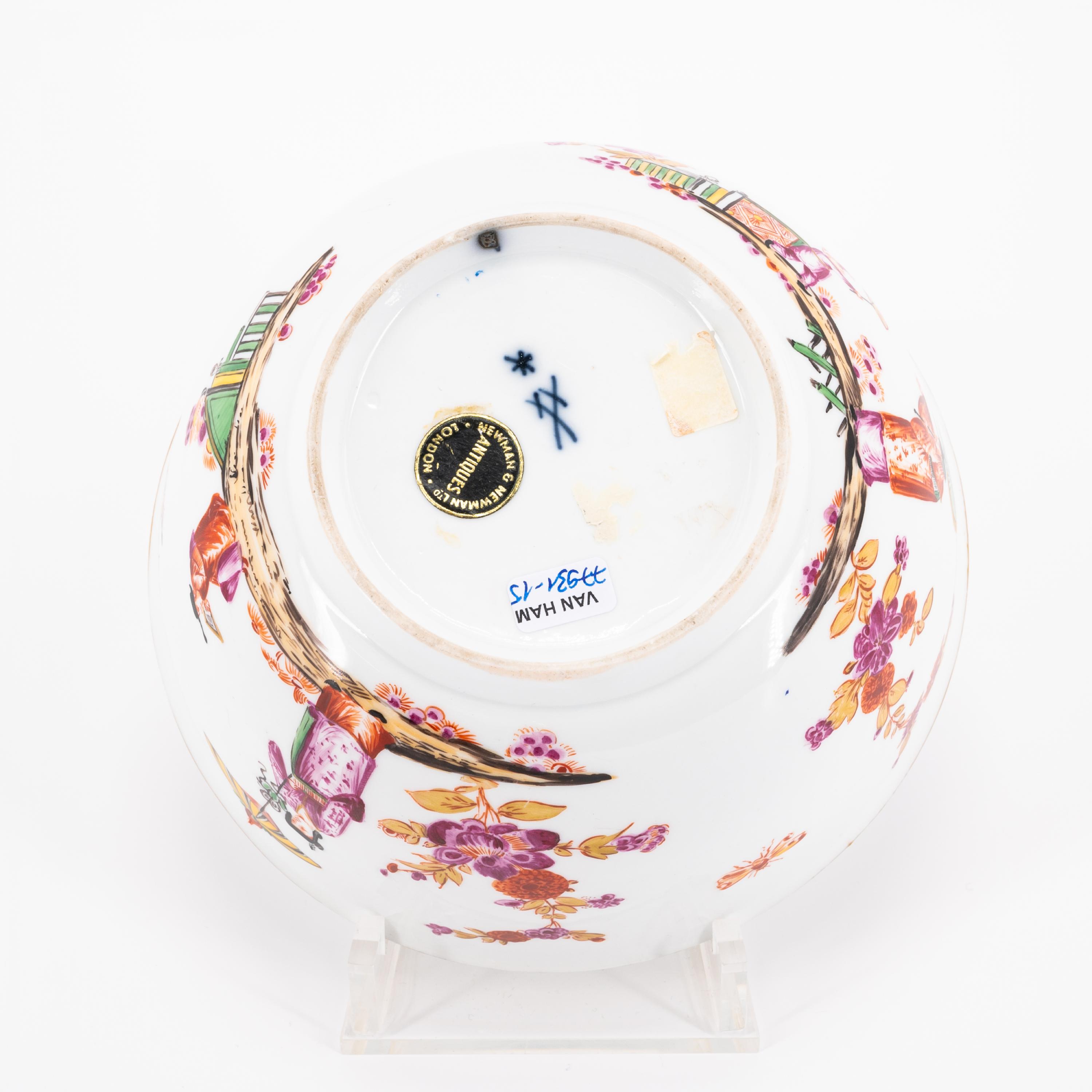 Beschreibung: Auf der Wandung je zwei Szenen mit großen Chinoiserien. Einmal Chinesin mit Schirm und vor