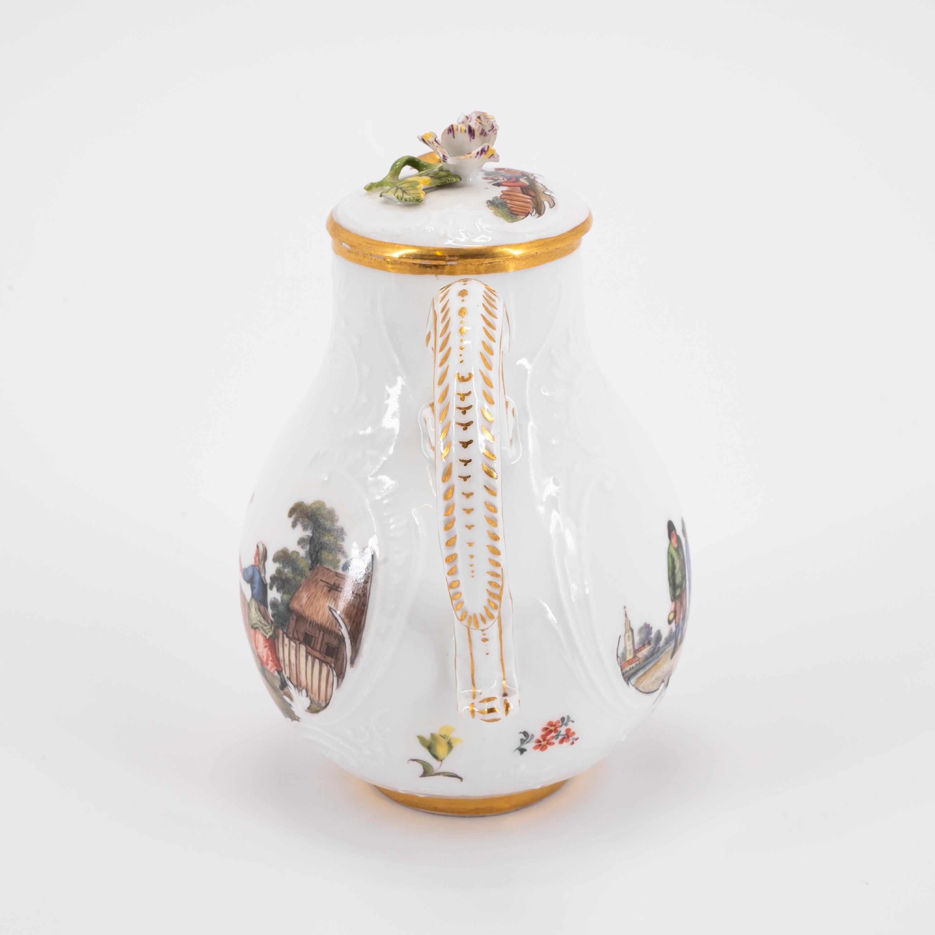 Beschreibung: Bestehend aus Kanne, Zuckerdose und zwei Mokkatassen.