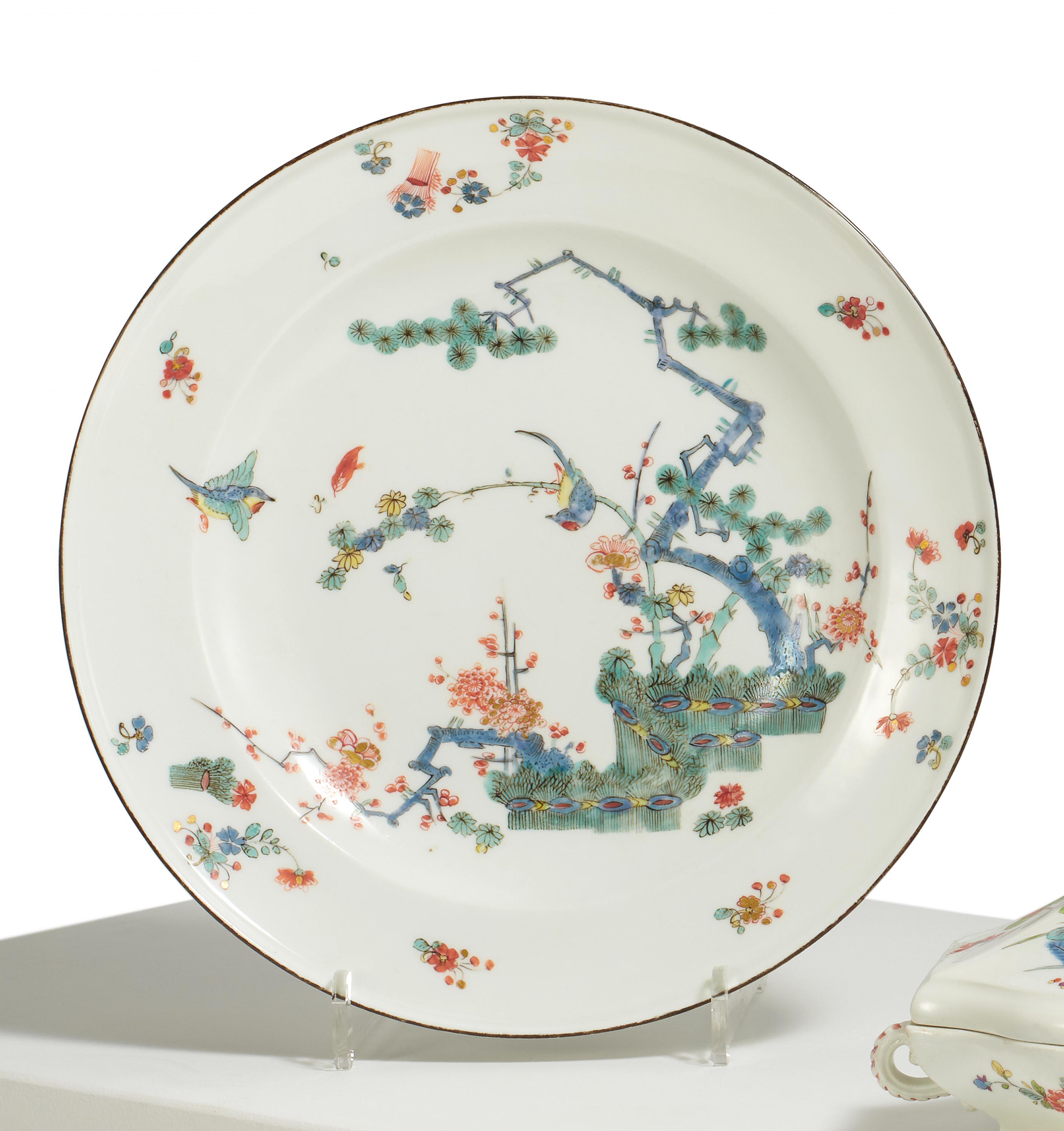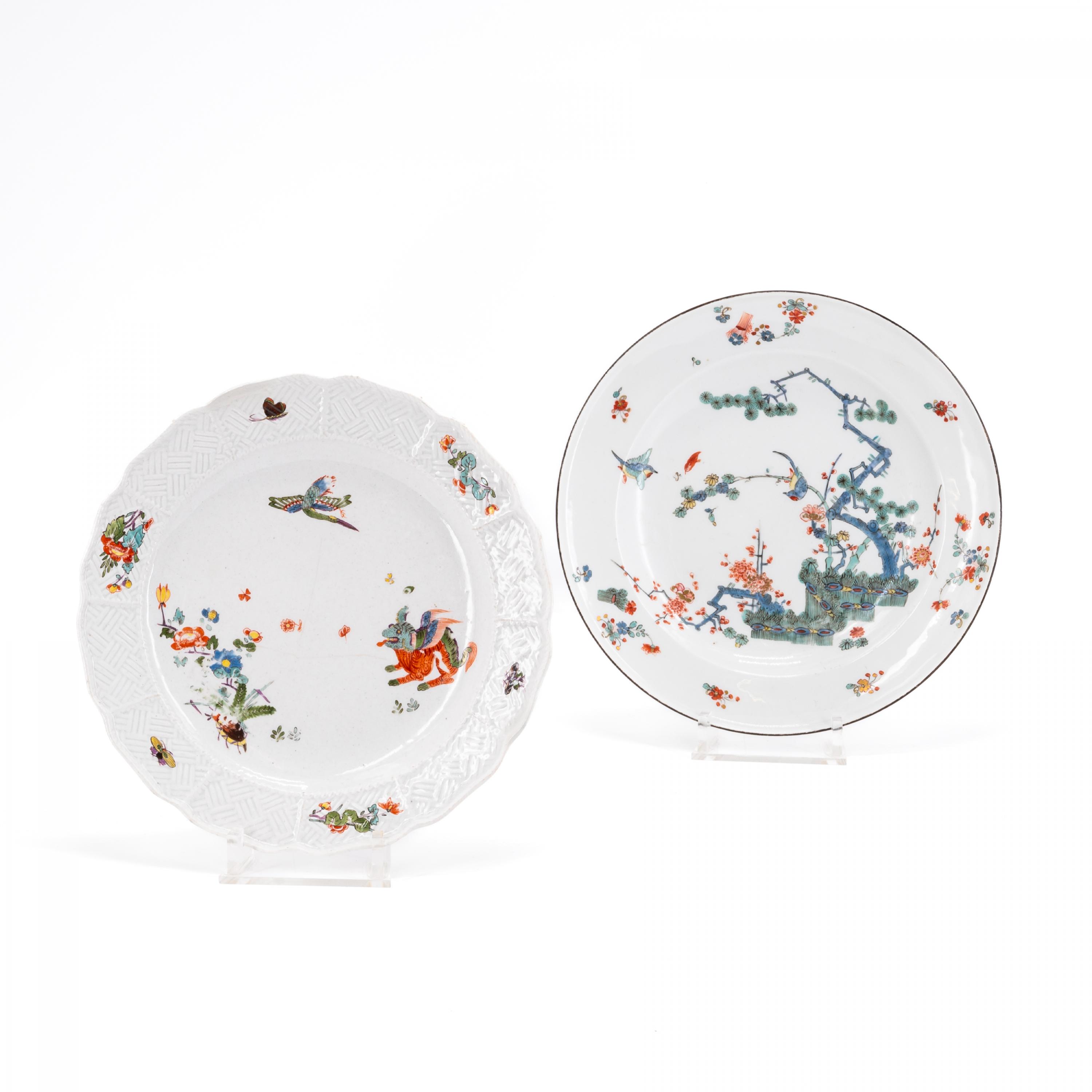 Beschreibung: Zwei Teller mit vielverwendeten Dekoren des Kakiemon-Porzellans.
