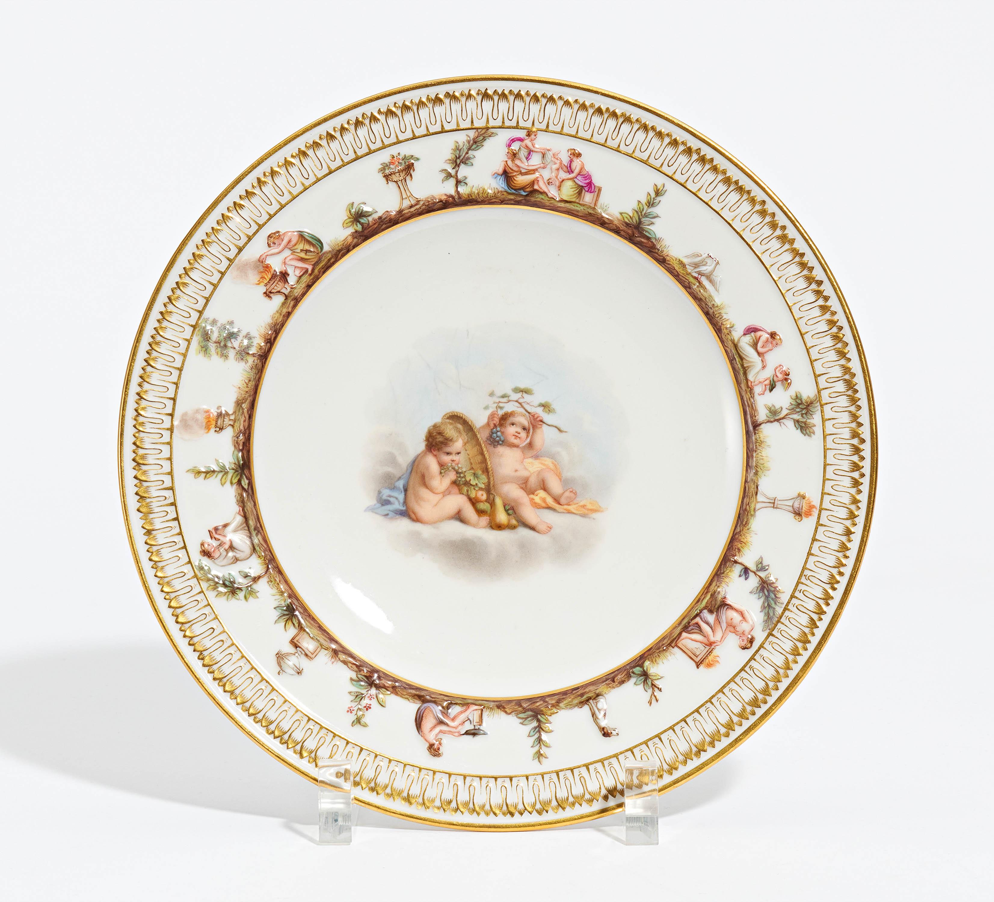 Technik: Porzellan, farbig und gold staffiert.