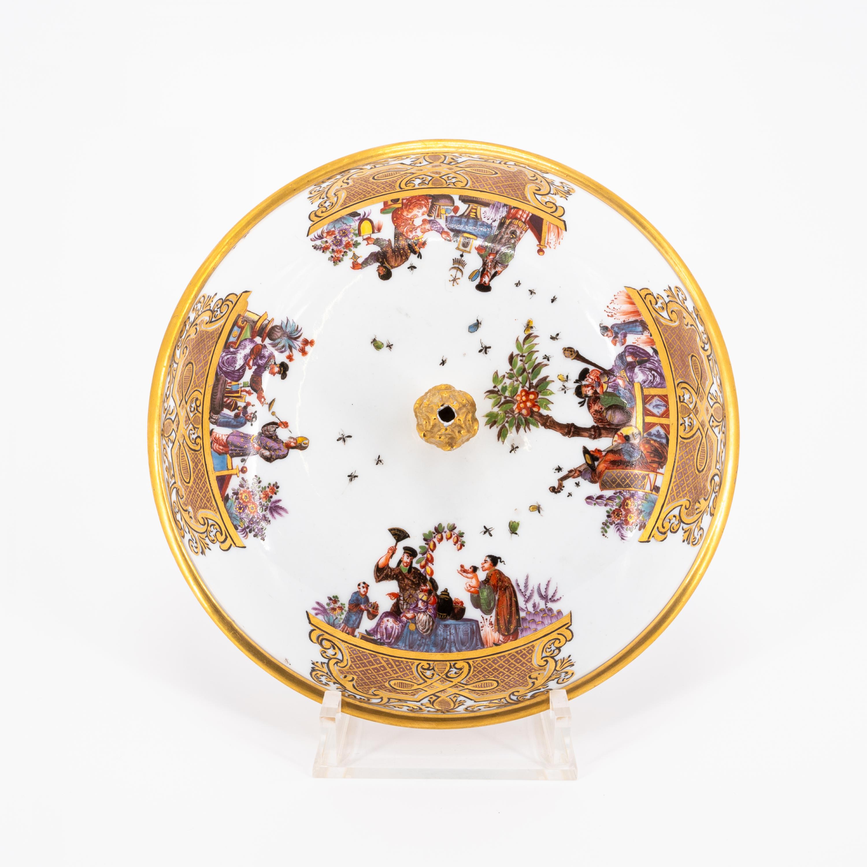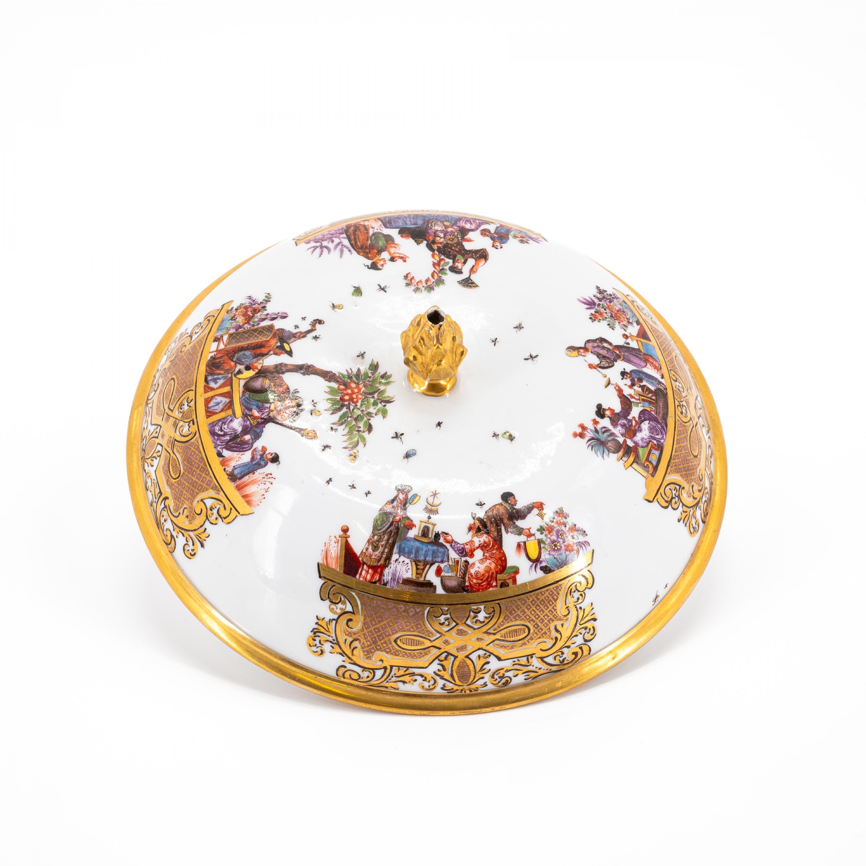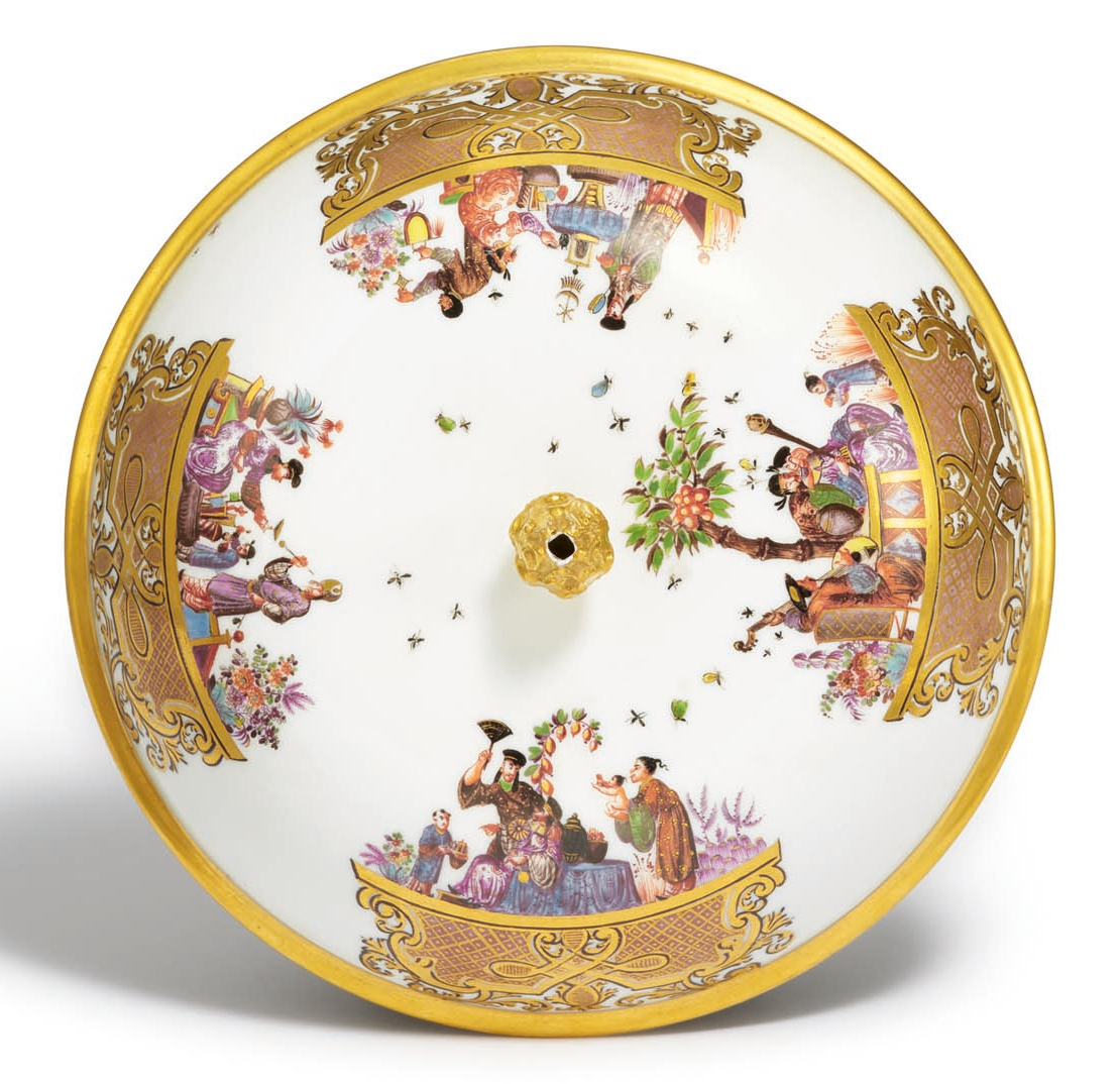 TERRINENDECKEL MIT FEINEN CHINOISERIEN ZUM NEUJAHRSWECHSEL.