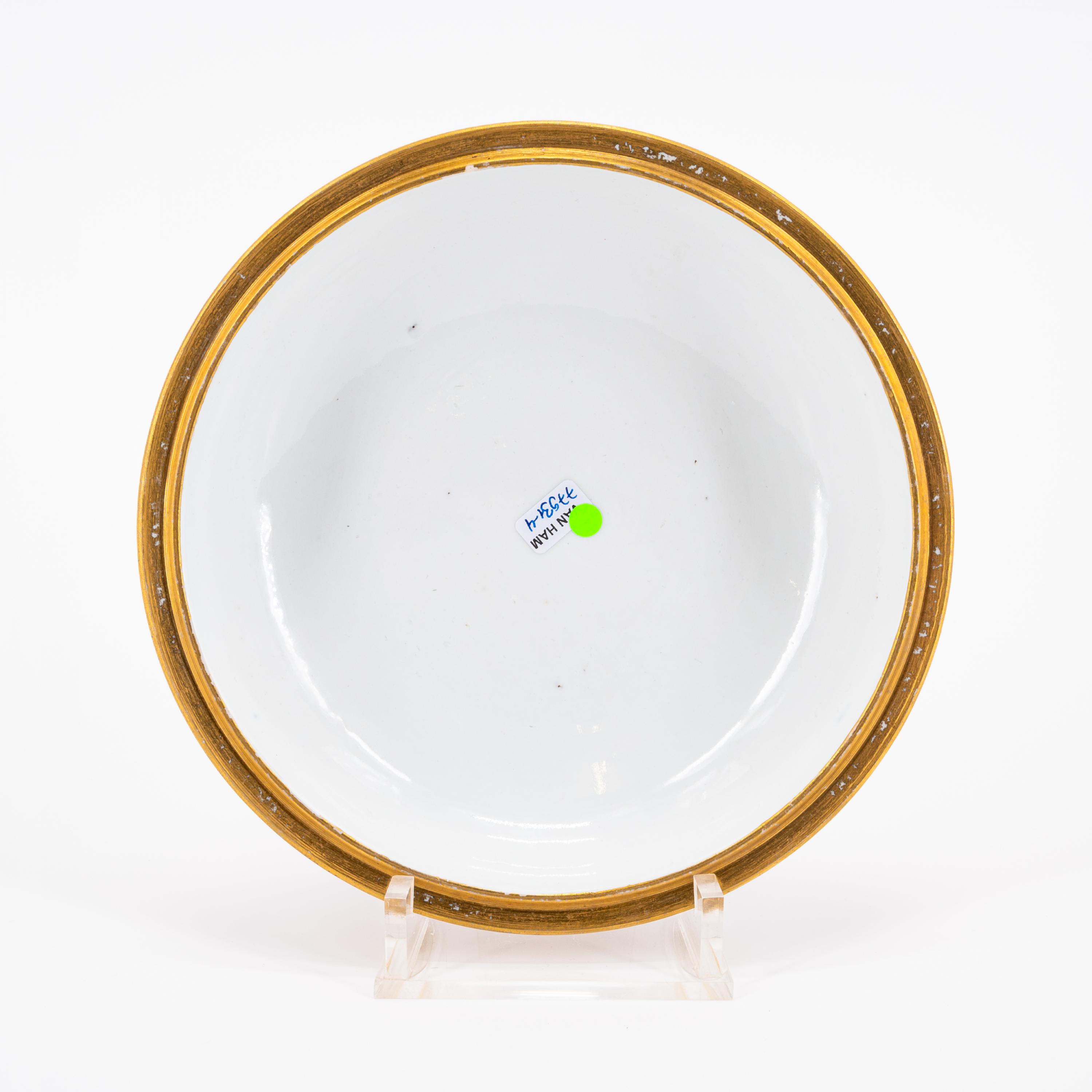 Technik: Porzellan, farbig staffiert und Gold dekoriert.
