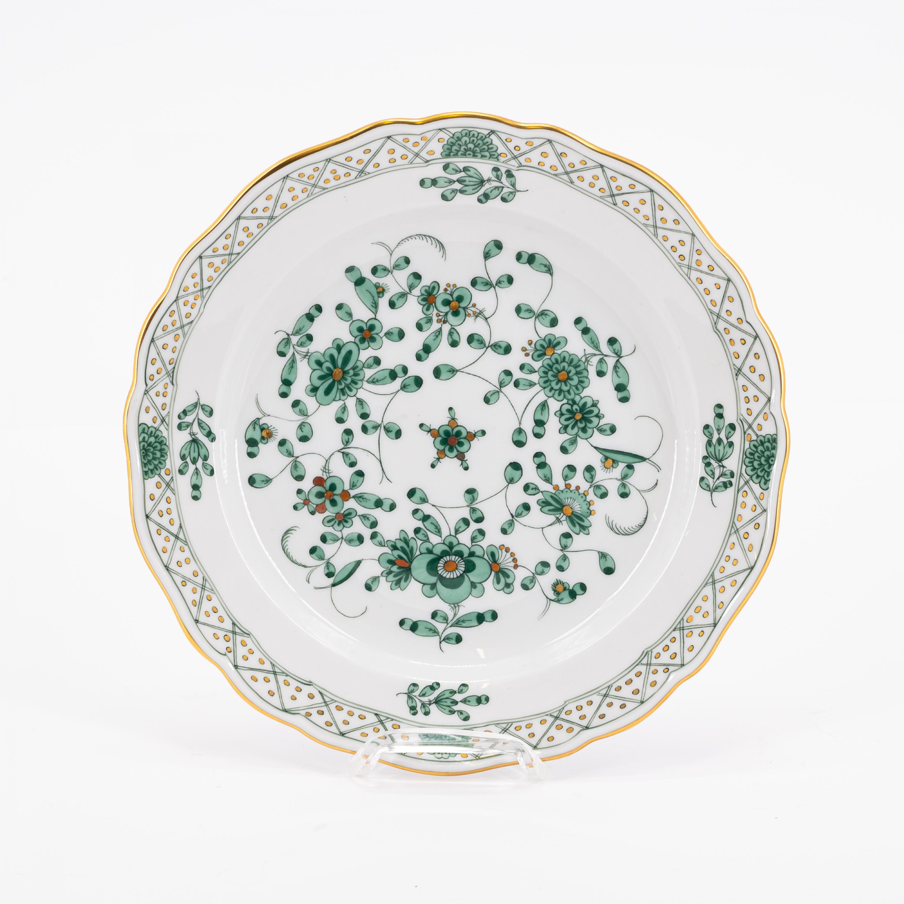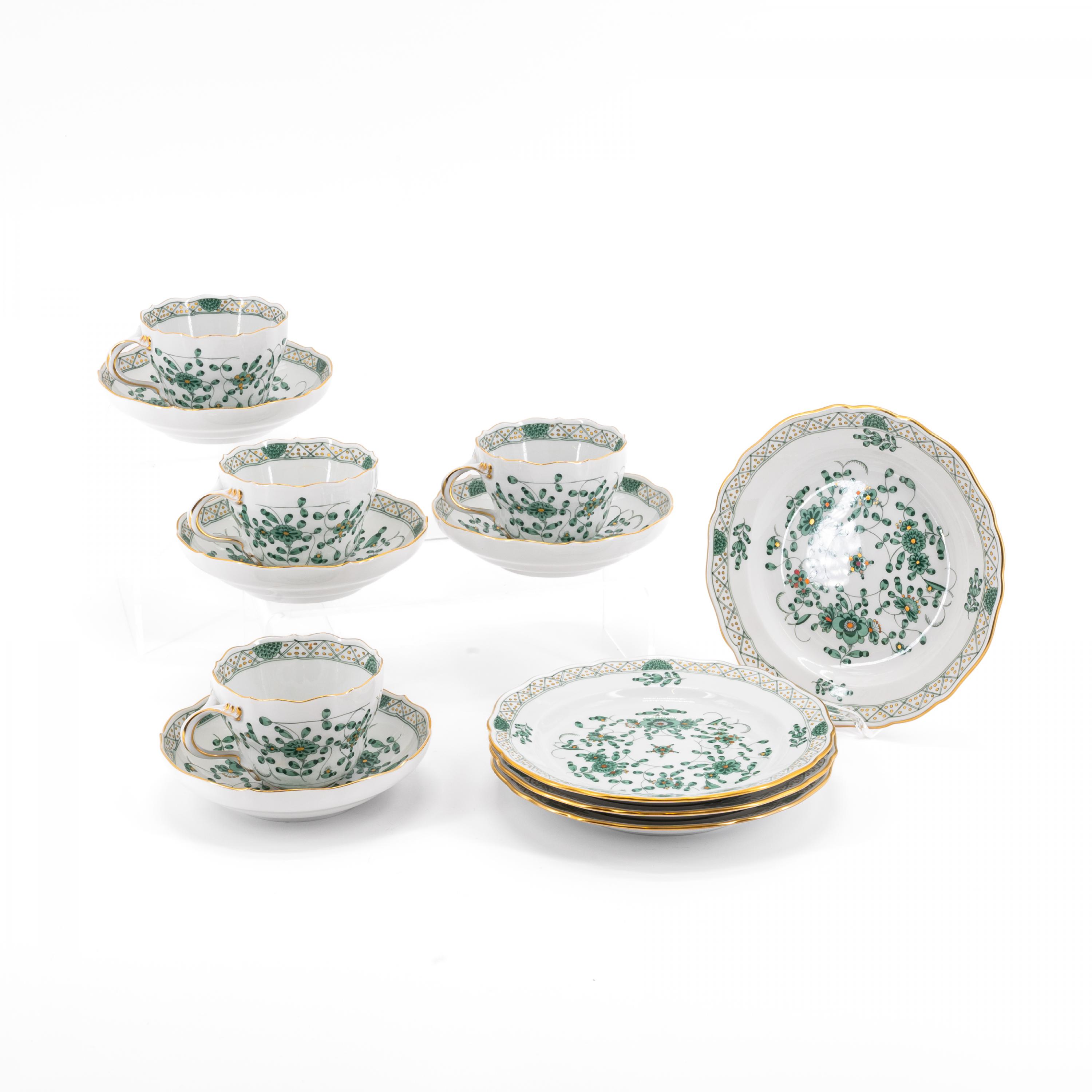 VIER KAFFEEGEDECKE MIT INDIANISCHEN BLUMEN IN GRÜN.