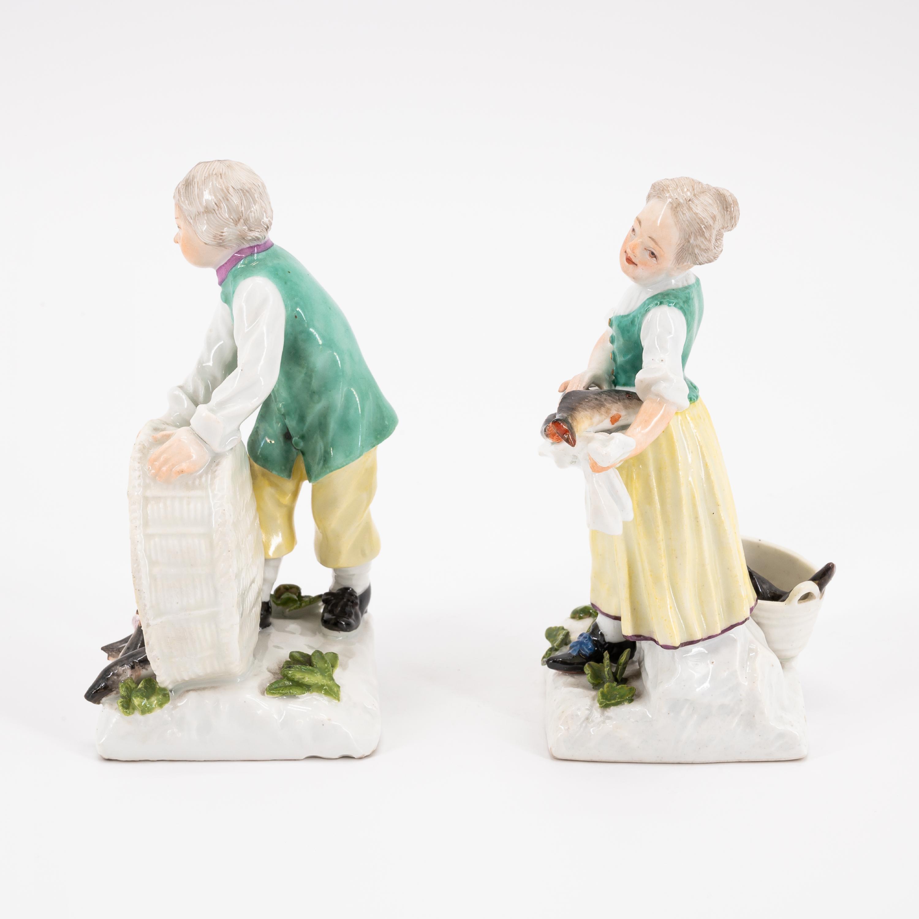 ZWEI KLEINE KINDERFIGUREN ALS FISCHVERKÄUFER.