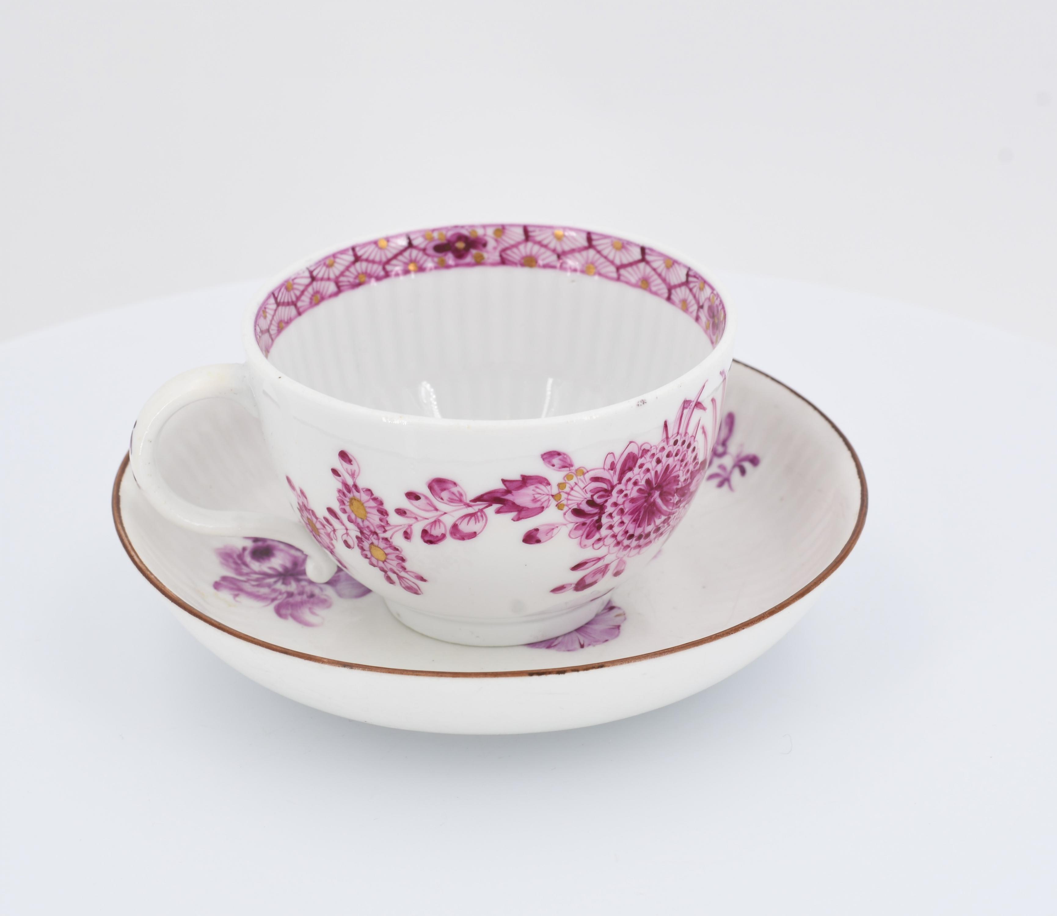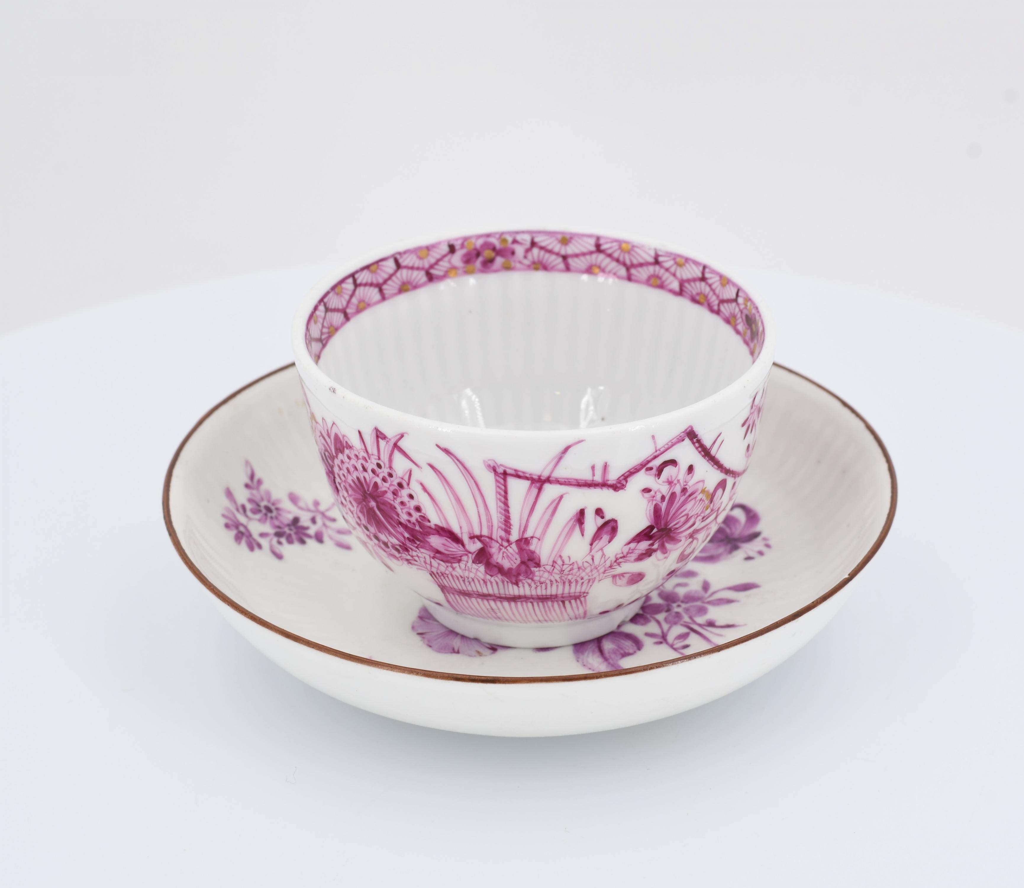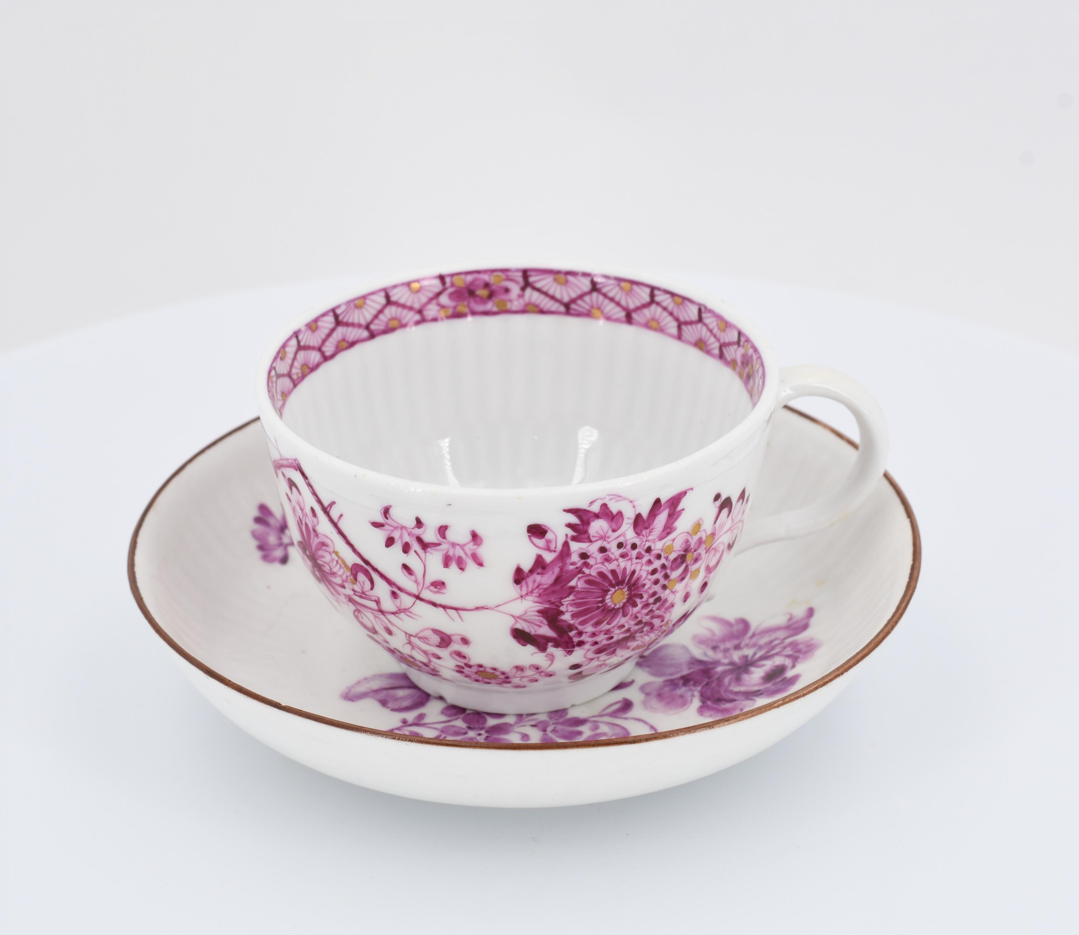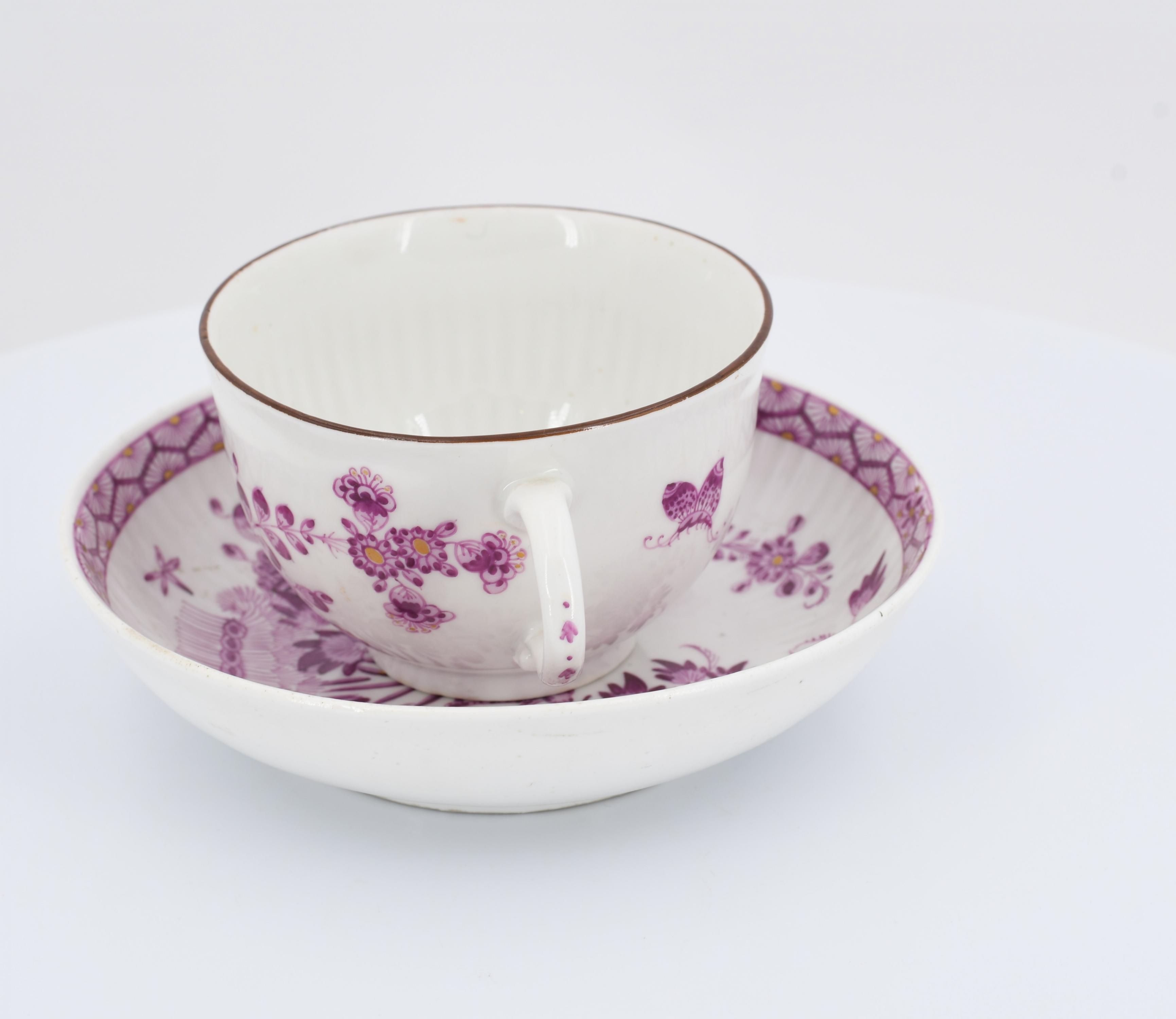 ZWEI TASSEN MIT UNTERTASSEN MIT FLORALEM DEKOR.