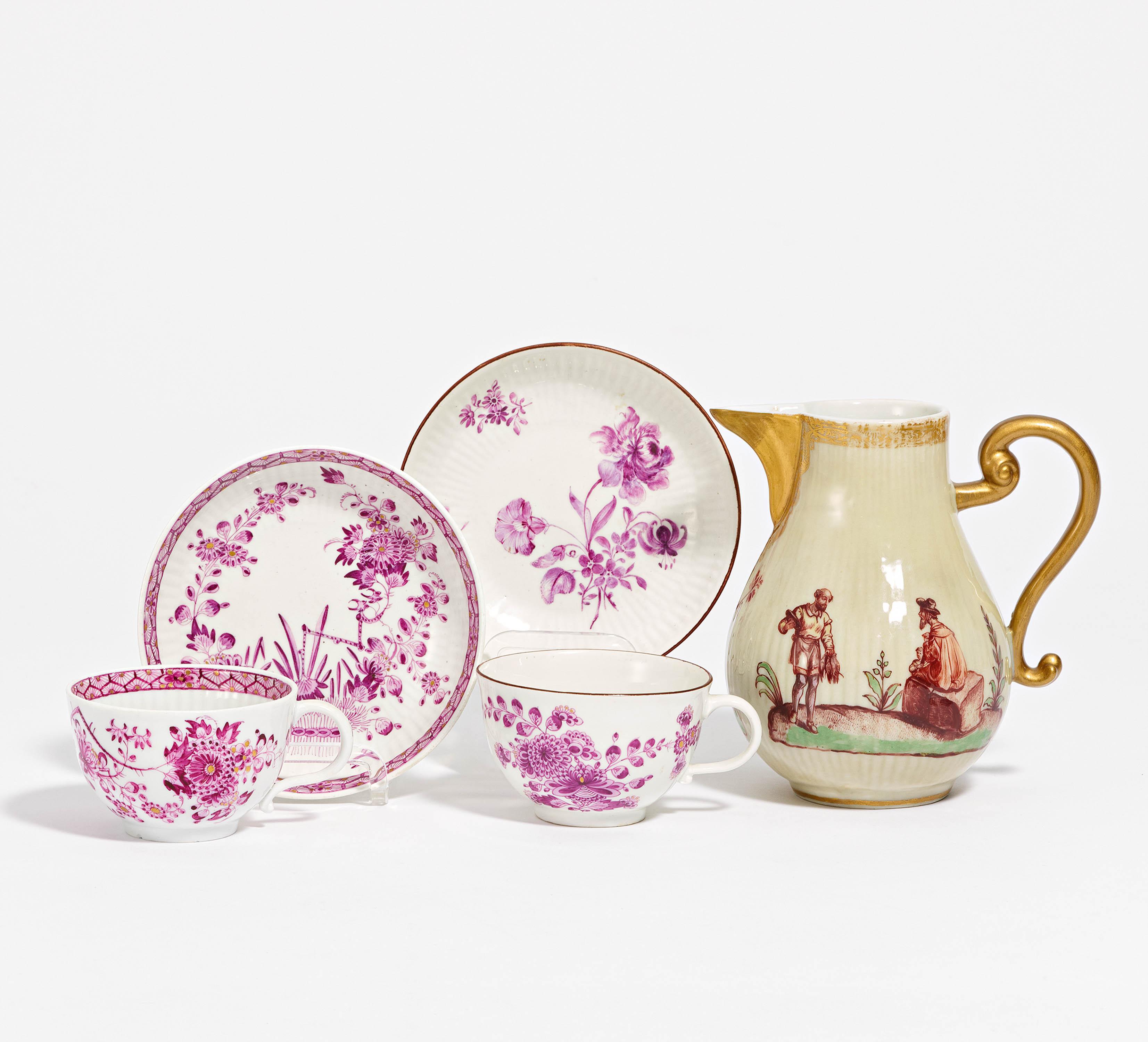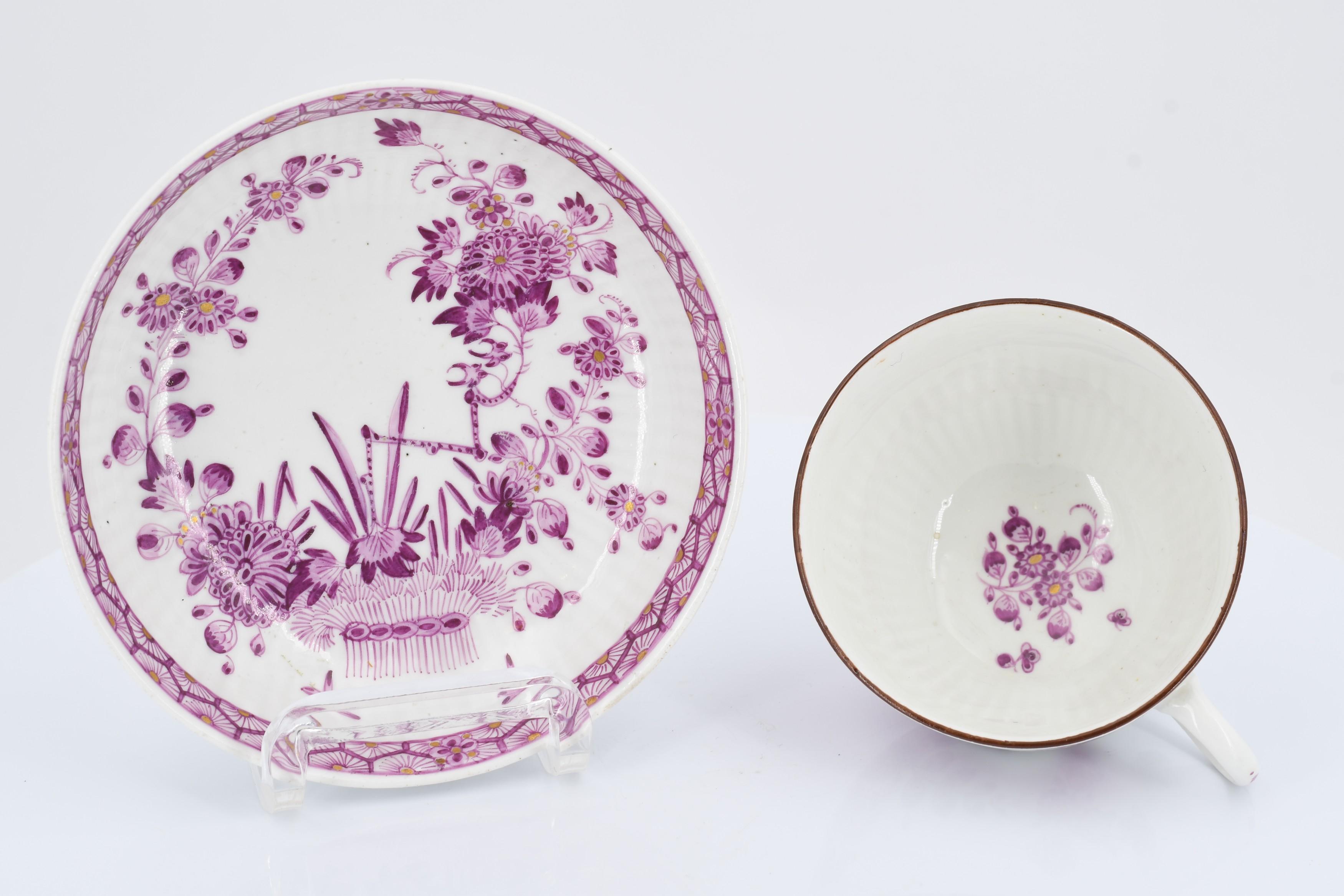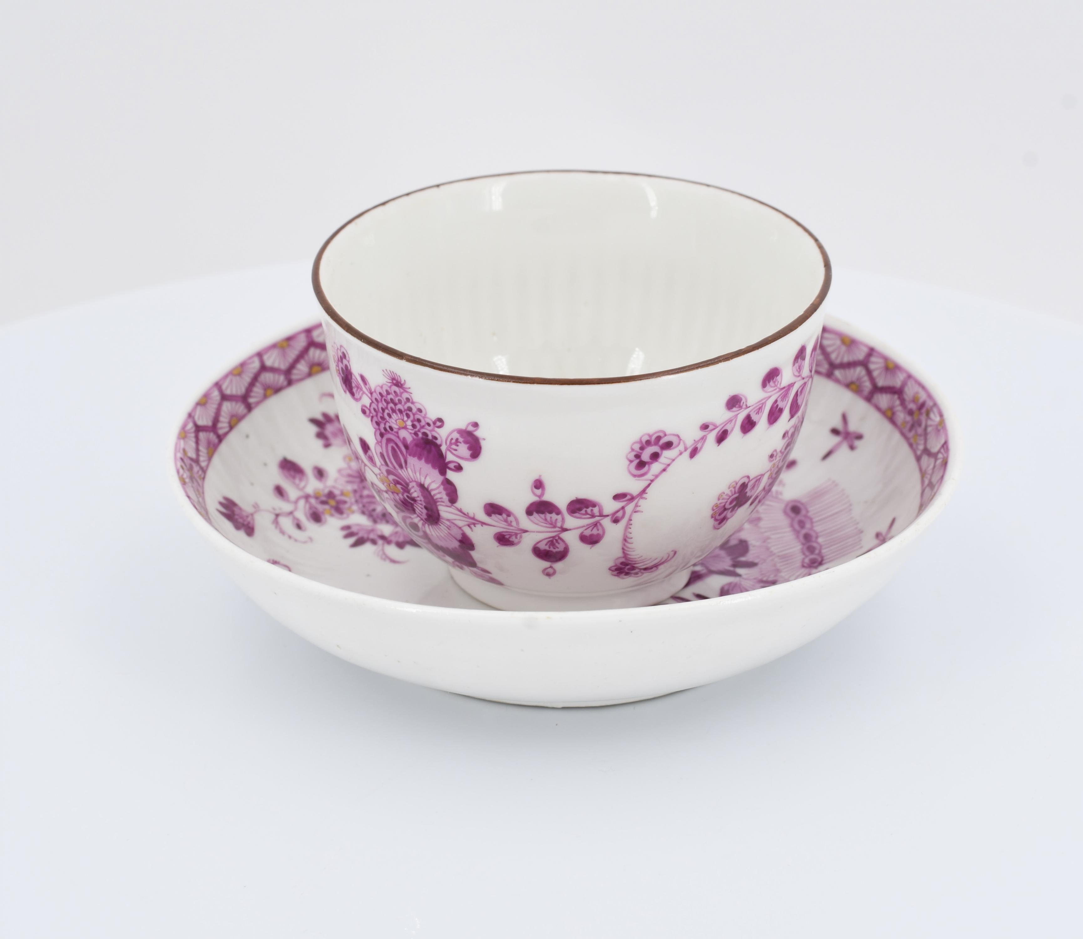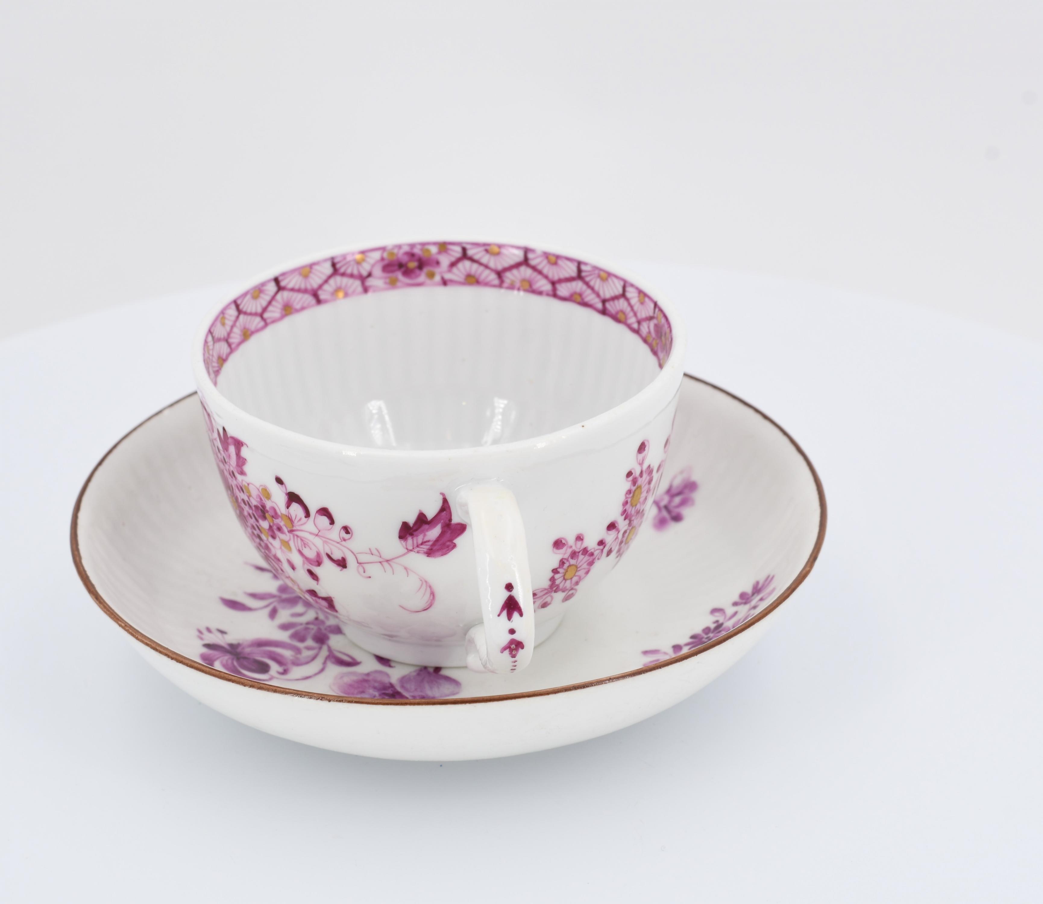 ZWEI TASSEN MIT UNTERTASSEN MIT FLORALEM DEKOR.