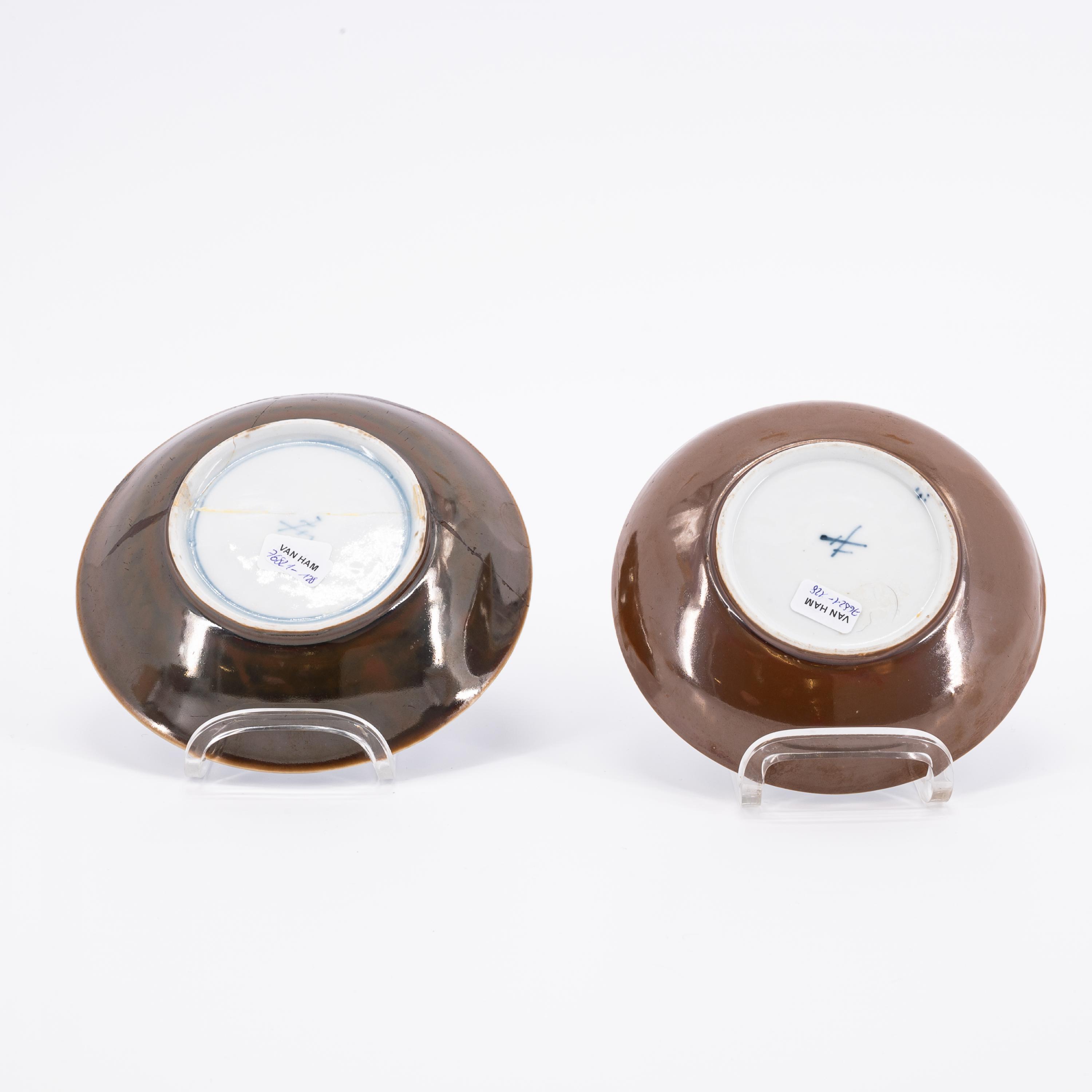 1 Doppelhenkeltasse und Untertasse mit braunem Fond,