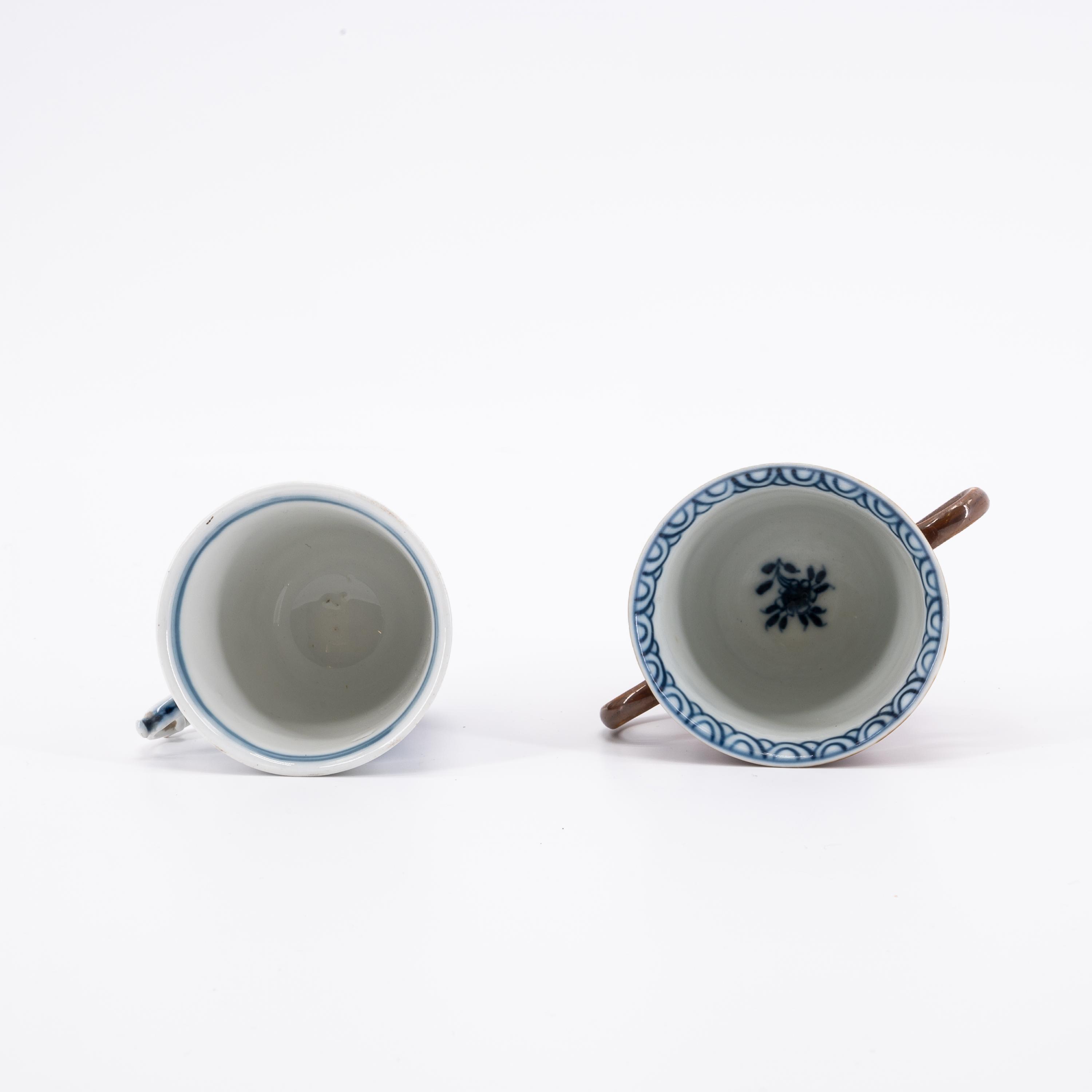 6 Tassen und 5 Untertassen blau-weiß dekoriert