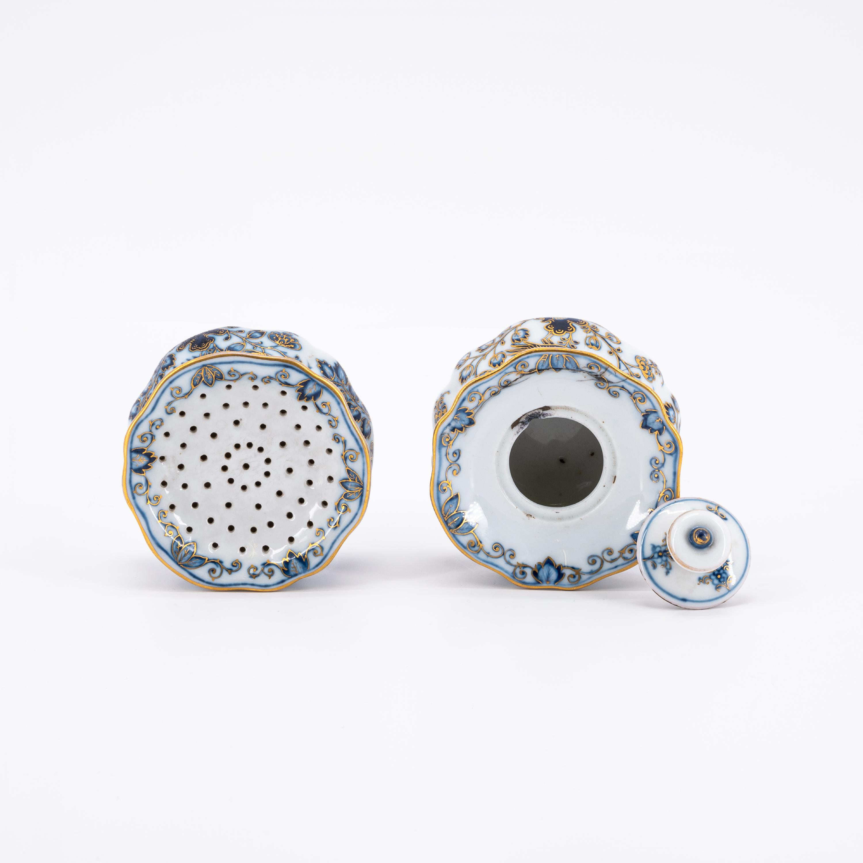 Technik: Porzellan, überwiegend blau dekoriert, tlw. farbig staffiert.