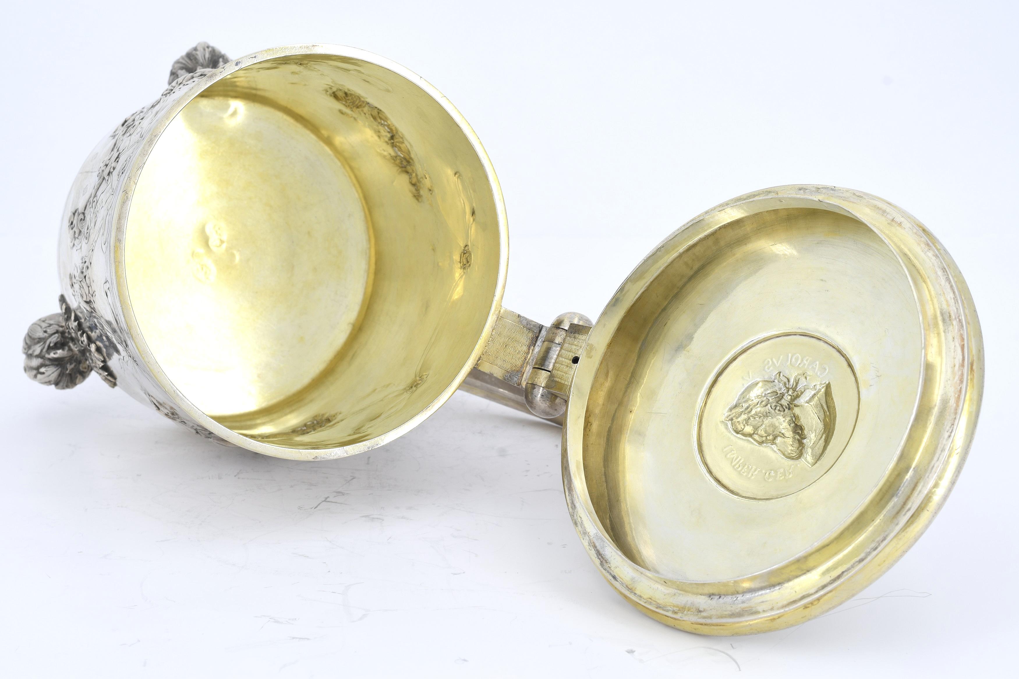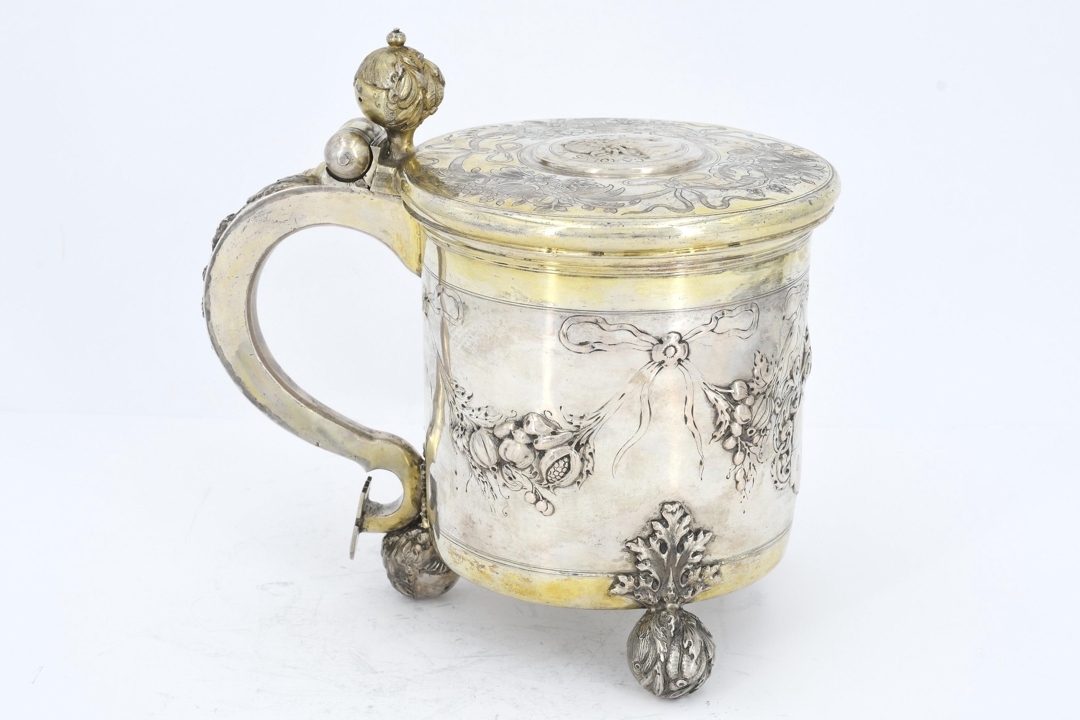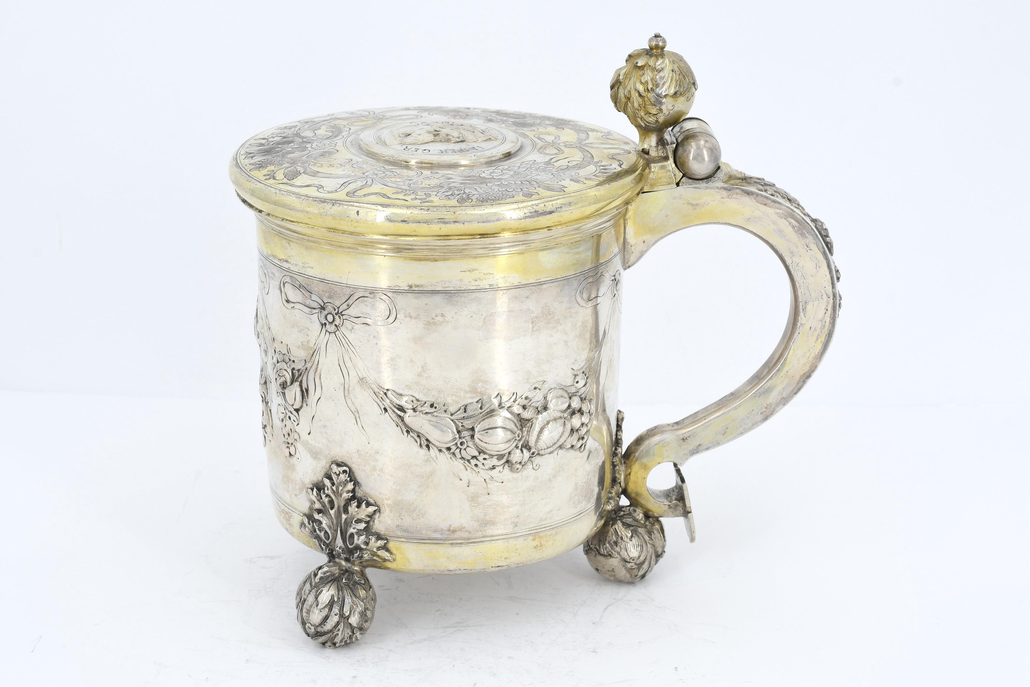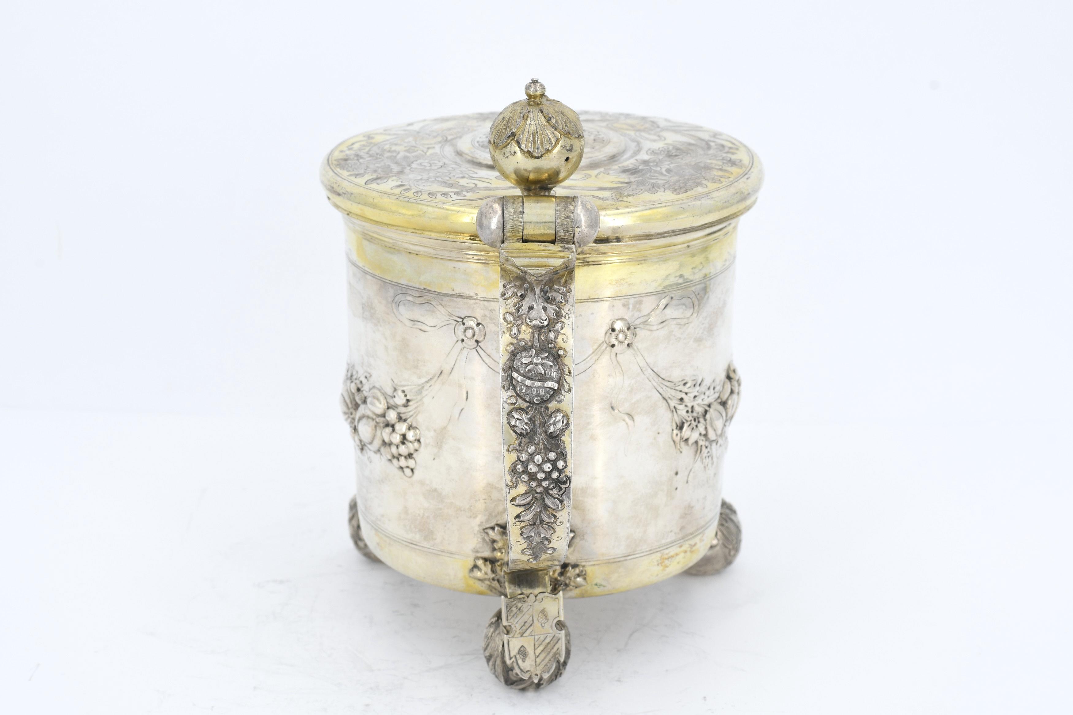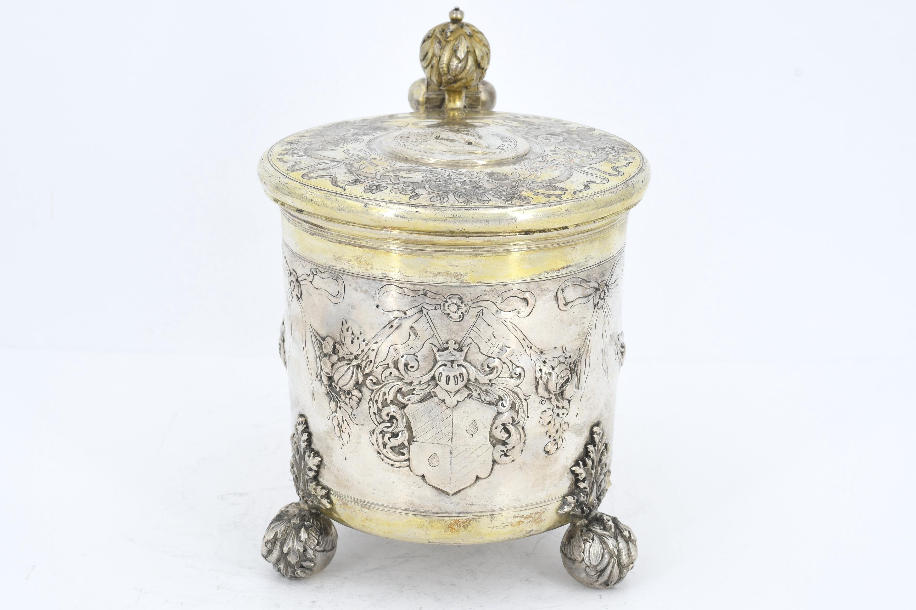 GROßER DECKELHUMPEN MIT KUGELFÜßEN UND WAPPENZIER.